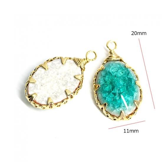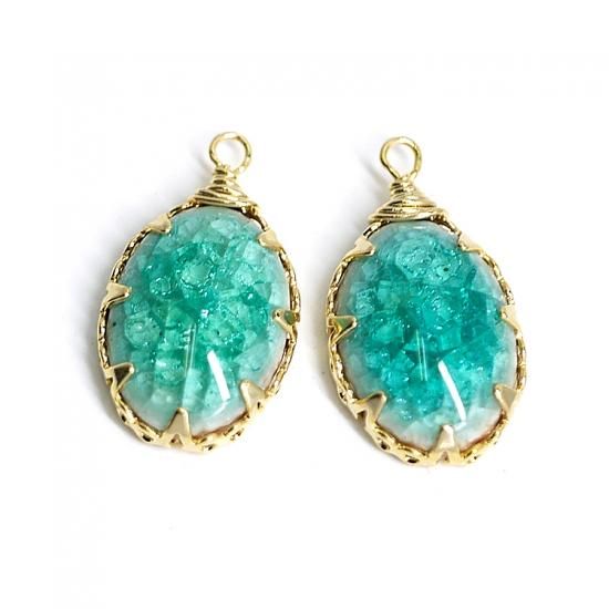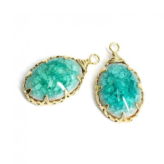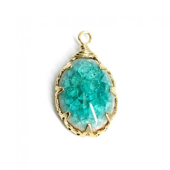 カプリーブルーカラーがグラデーションされたセラミックの上に割られたようなガラスROCK Glass(Crack Glass)で表面を加工したゴールドチャーム、ペンダントのパーツです。