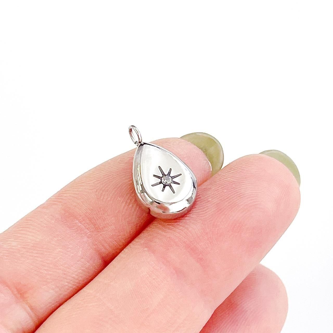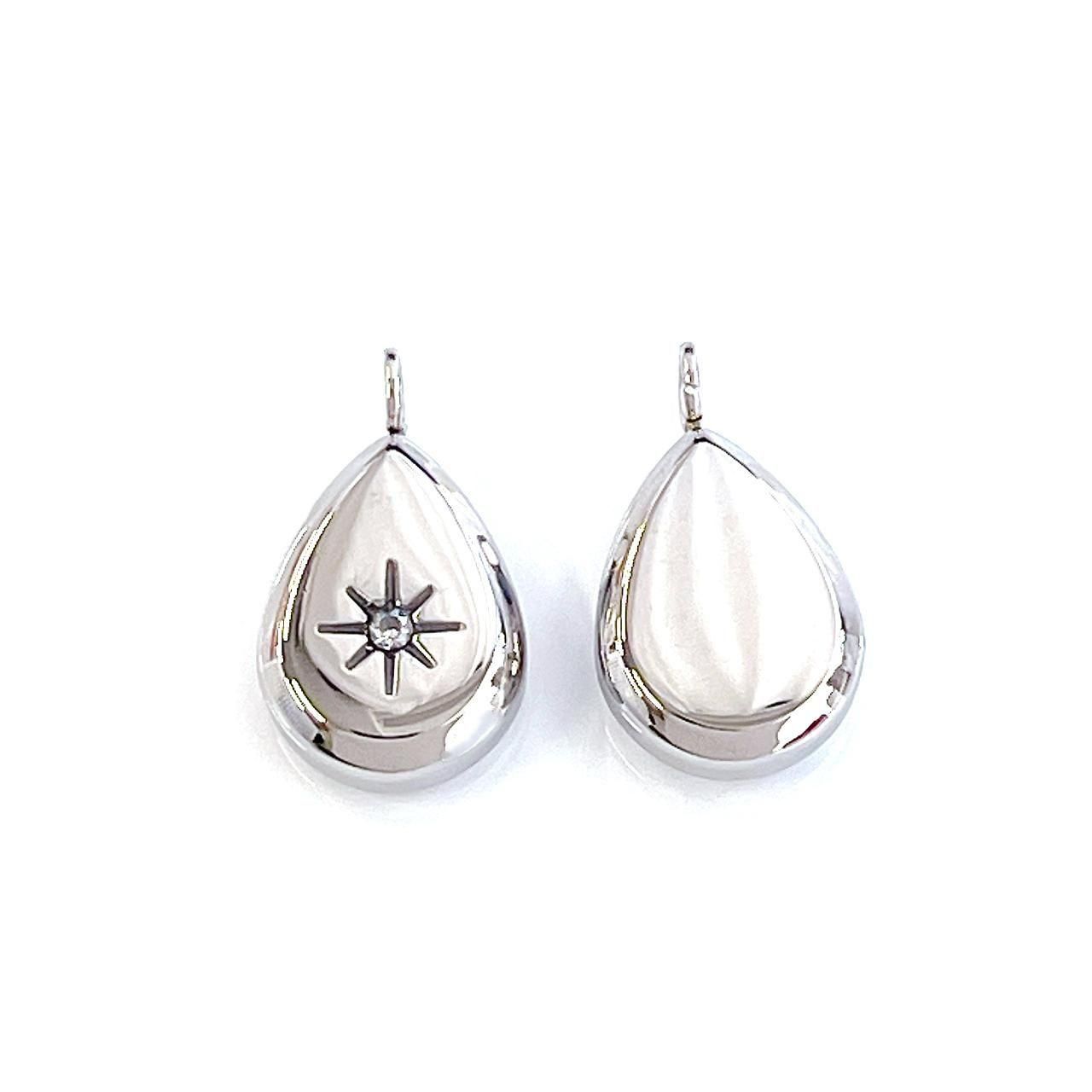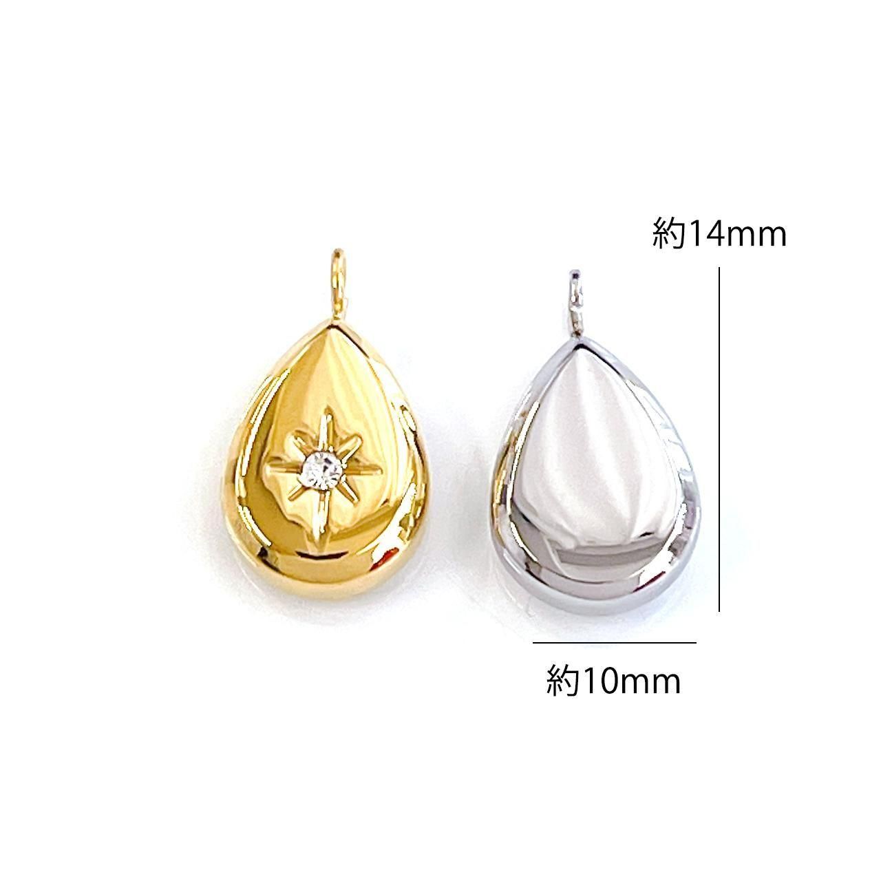 【1個】一粒キュービックジルコニア 約10*14mm しずく形 ペンダント チャーム 316L サージカルステンレス