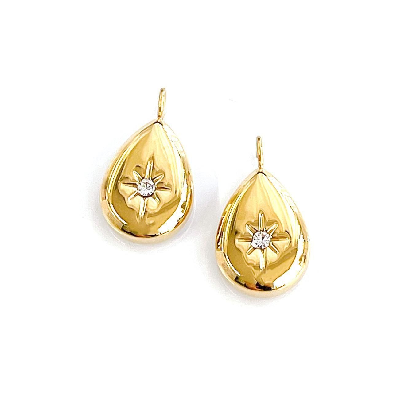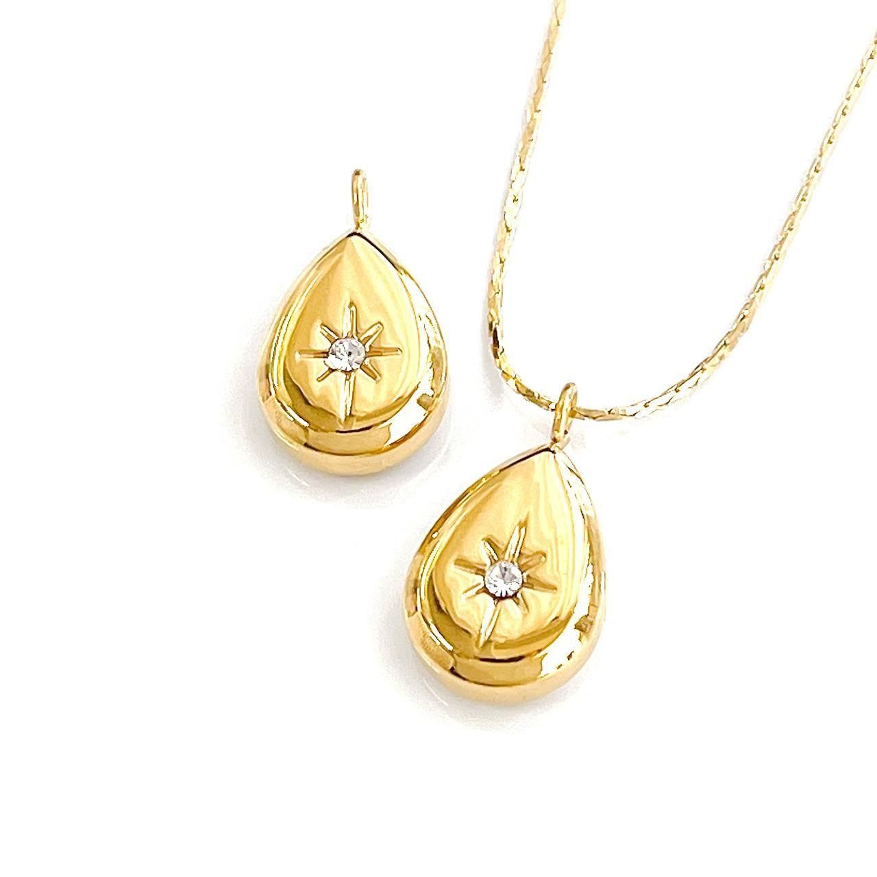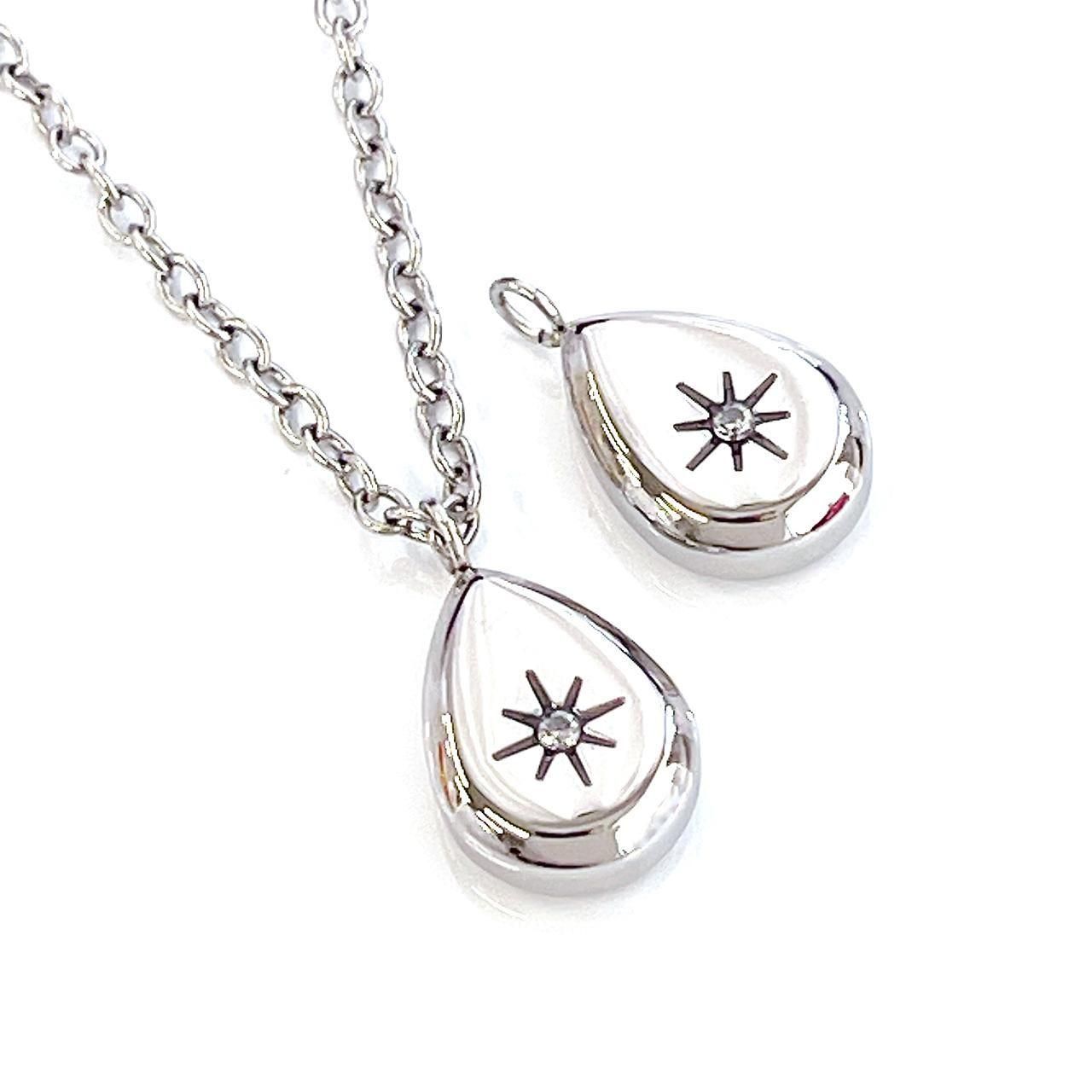 【1個】一粒キュービックジルコニア 約10*14mm しずく形 ペンダント チャーム 316L サージカルステンレス