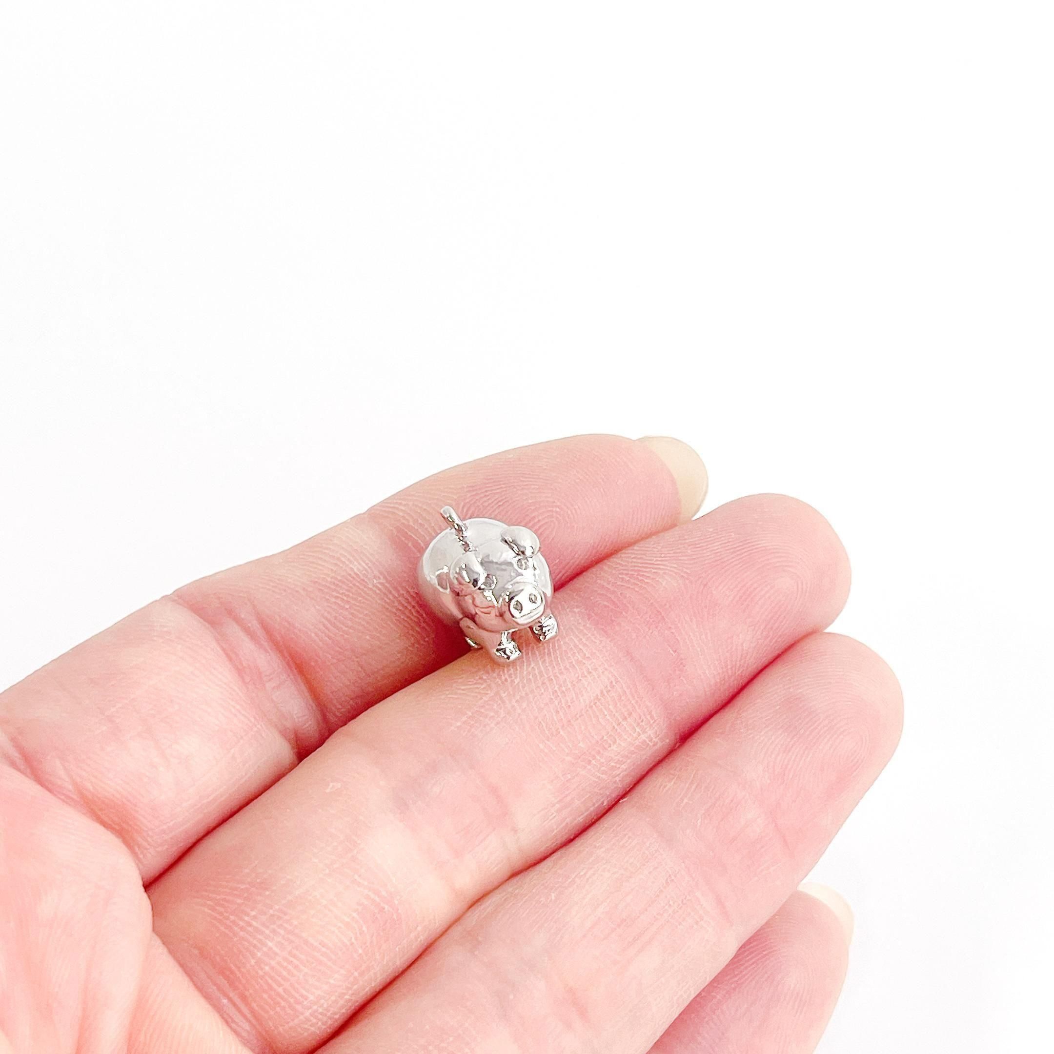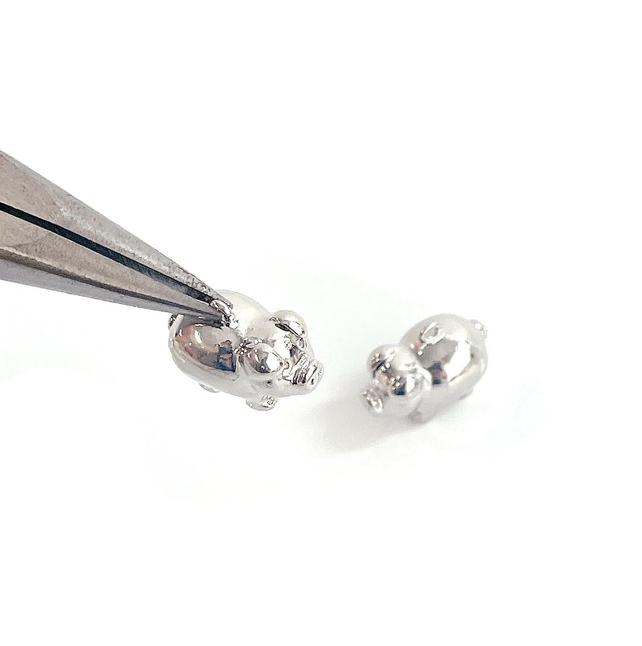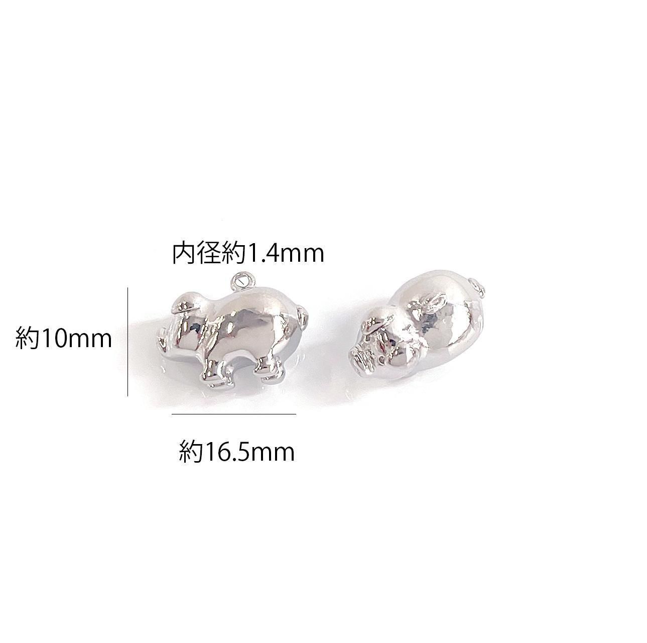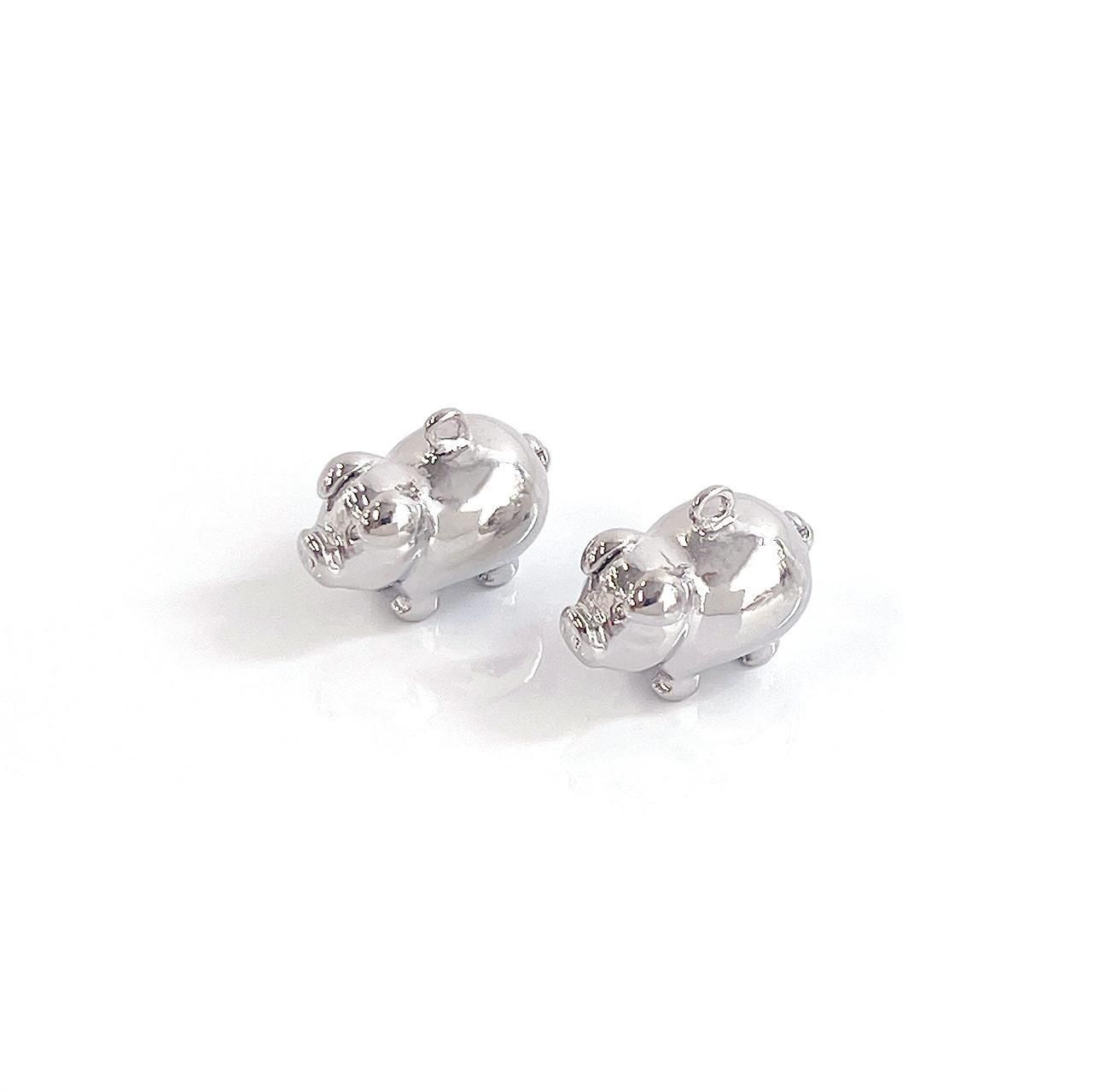 まるっとしたフォルムが愛らしい、立体的なぶたモチーフのチャームです。つややかなシルバーカラーの表面に、耳や脚などの細部もしっかりと造形されており、リアルで存在感のあるデザインに仕上がっています。お守りやラッキーチャームとしても人気の「ぶたモチーフ」は、ユニークで遊び心のあるアクセサリー作りにぴったり。キーホルダーやバッグチャーム、ネックレスのトップなど、様々なアレンジにおすすめです。
