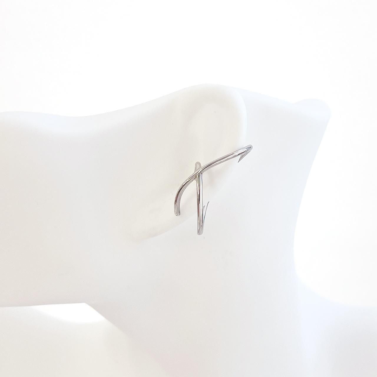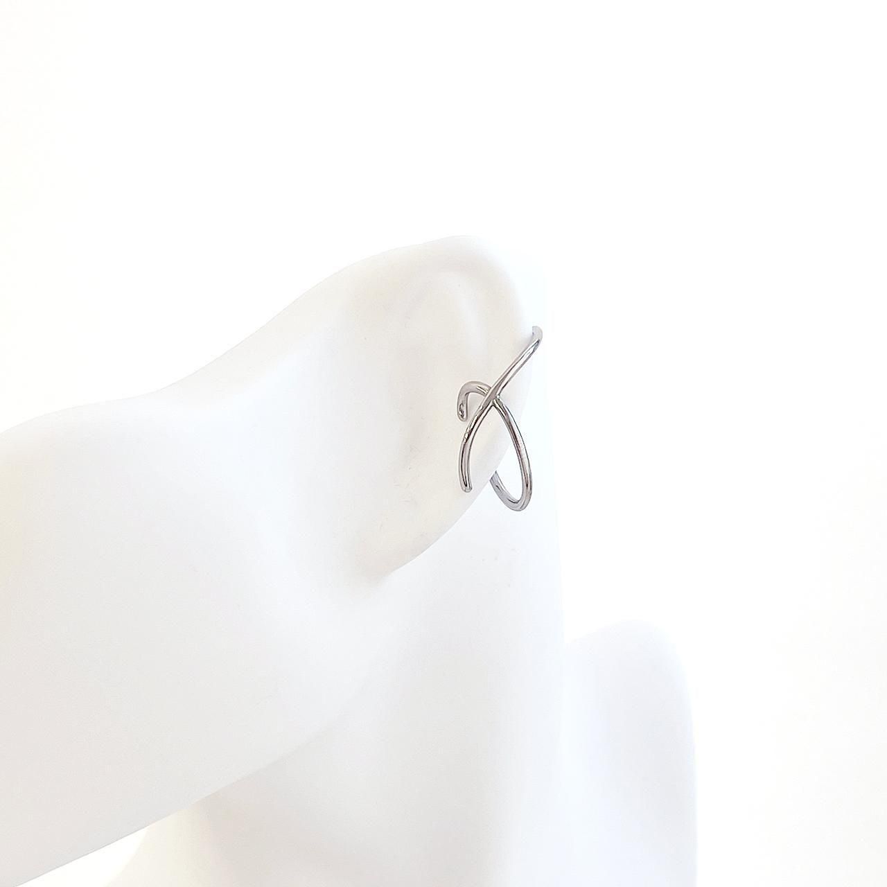 ・滑らかな曲線が美しく交差する、シンプルながら存在感のあるイヤーカフ金具。316Lサージカルステンレスを使用しており、金属アレルギーに配慮した素材です。耳に引っかけるだけで装着できるデザインで、ピアス穴がない方にもおすすめ。単品でのご使用はもちろん、チャームを追加してオリジナルイヤーカフ作りにも◎。