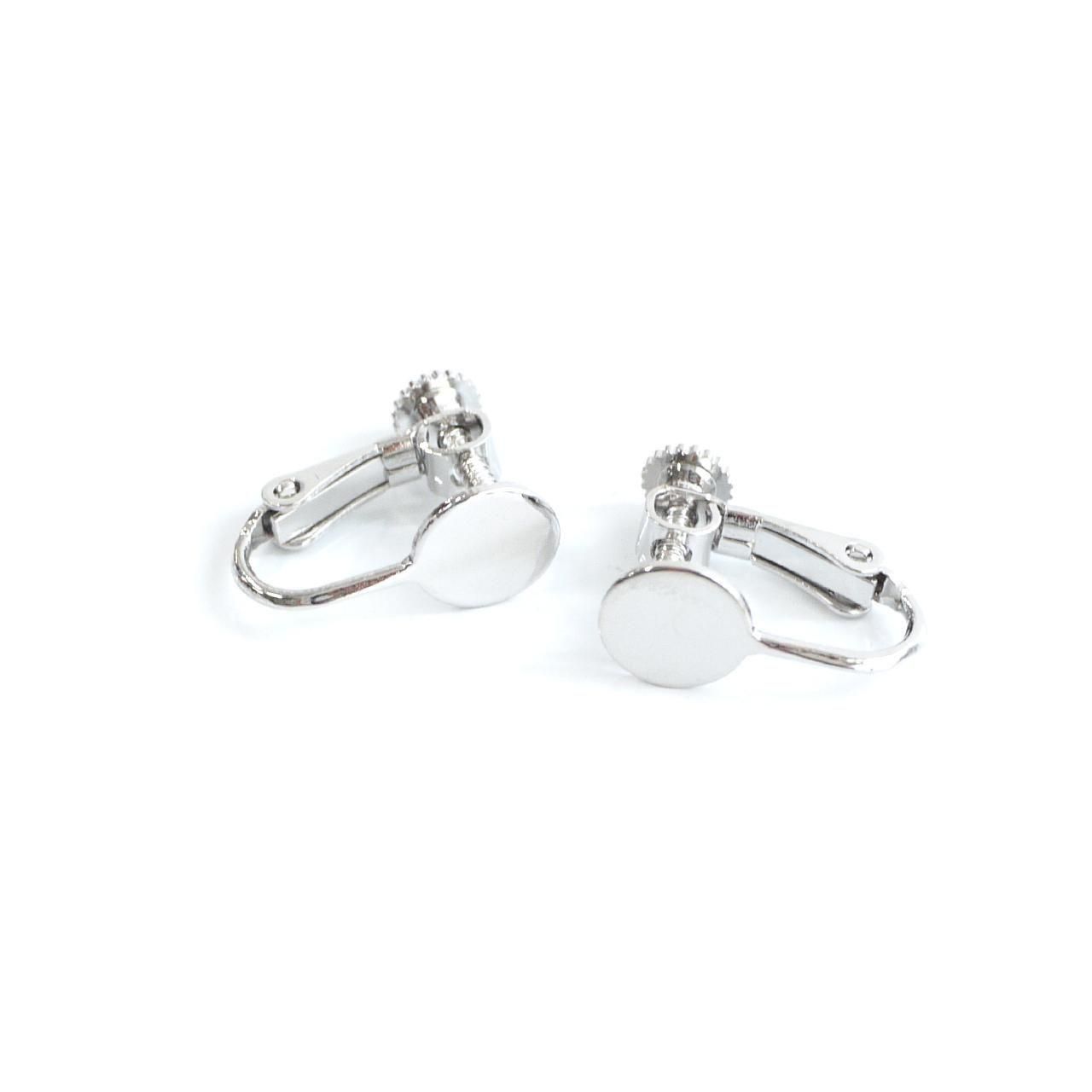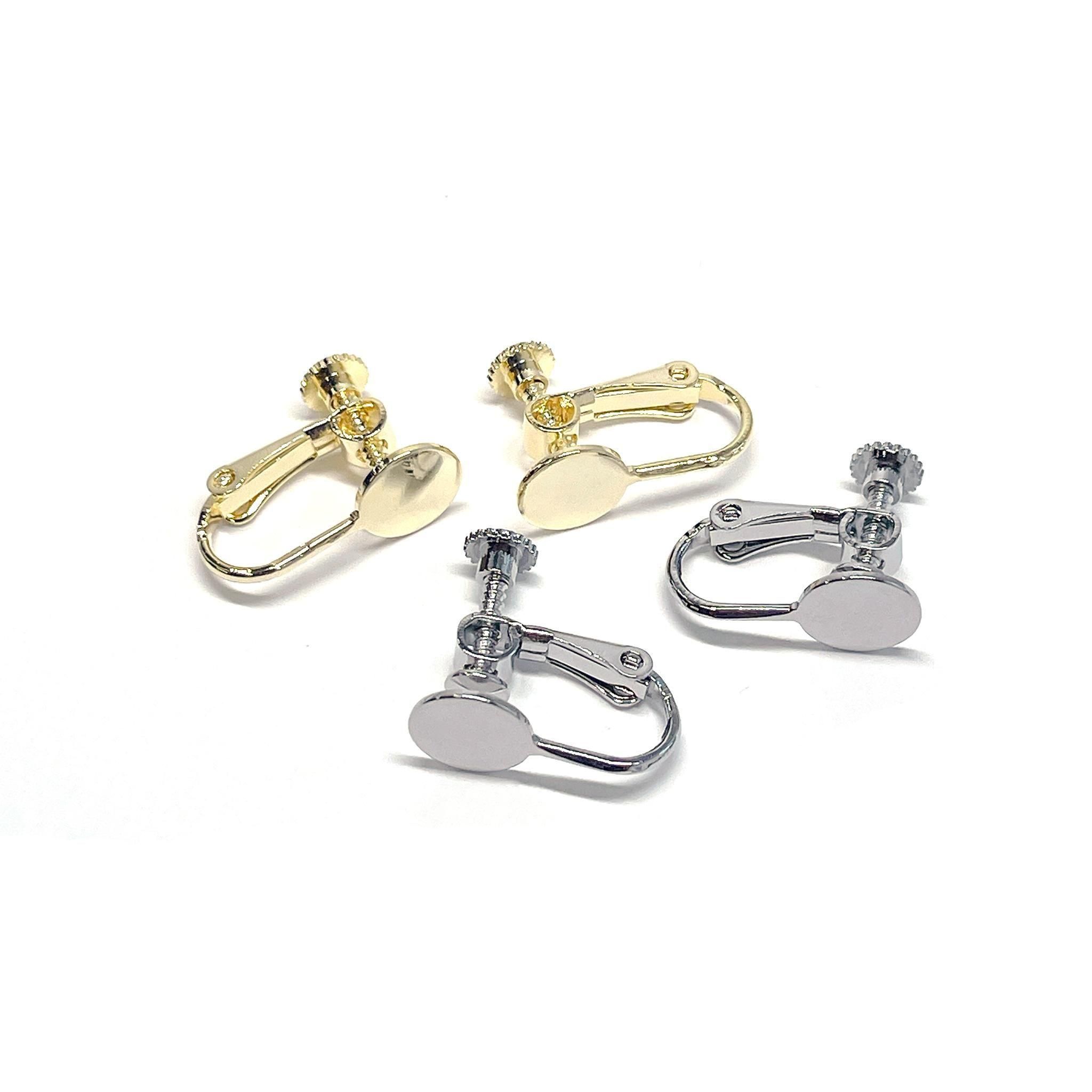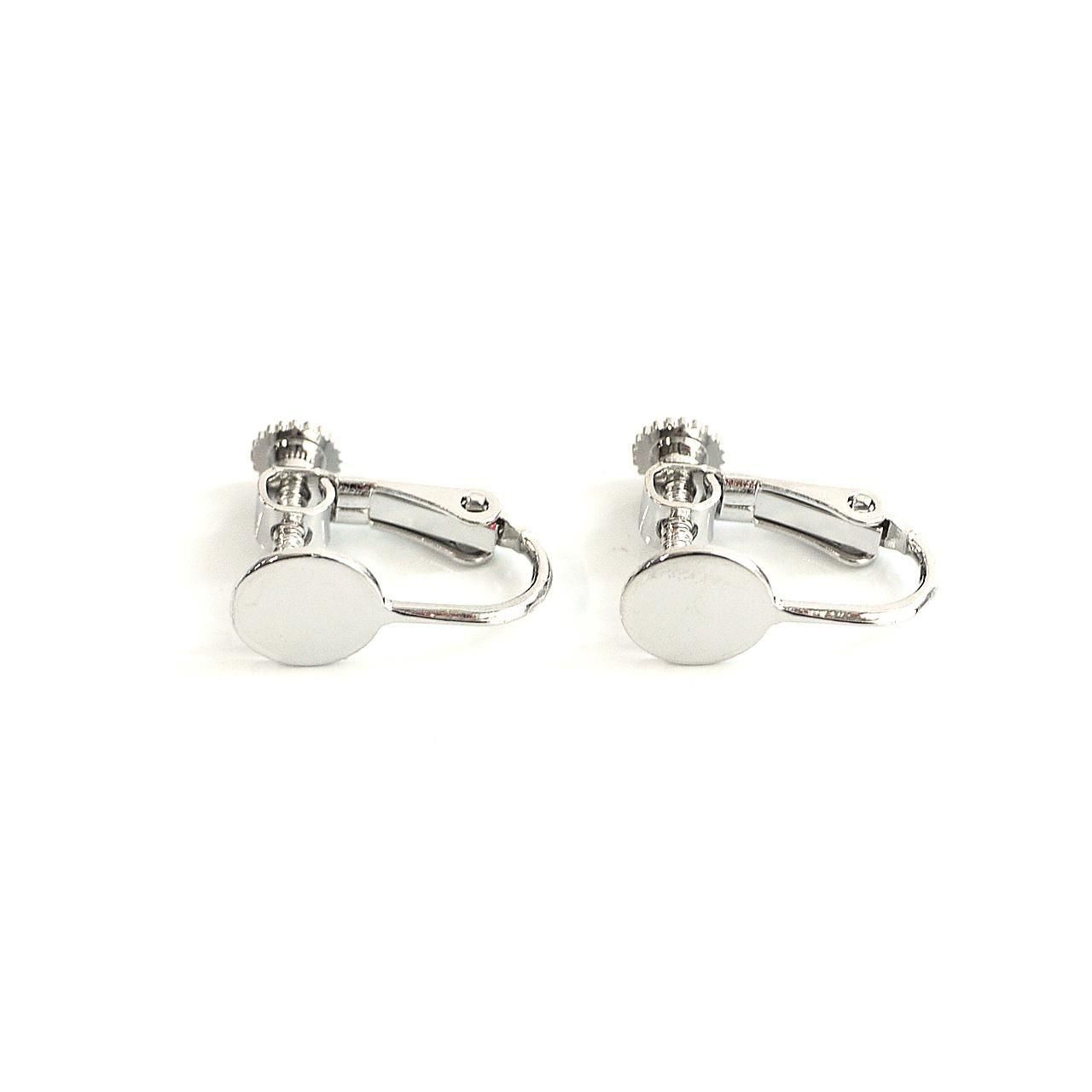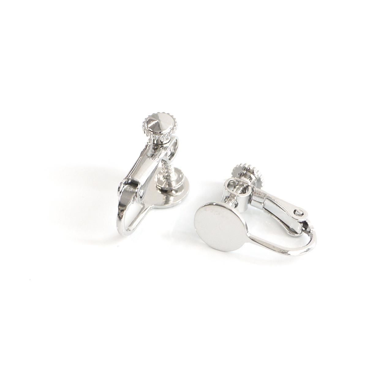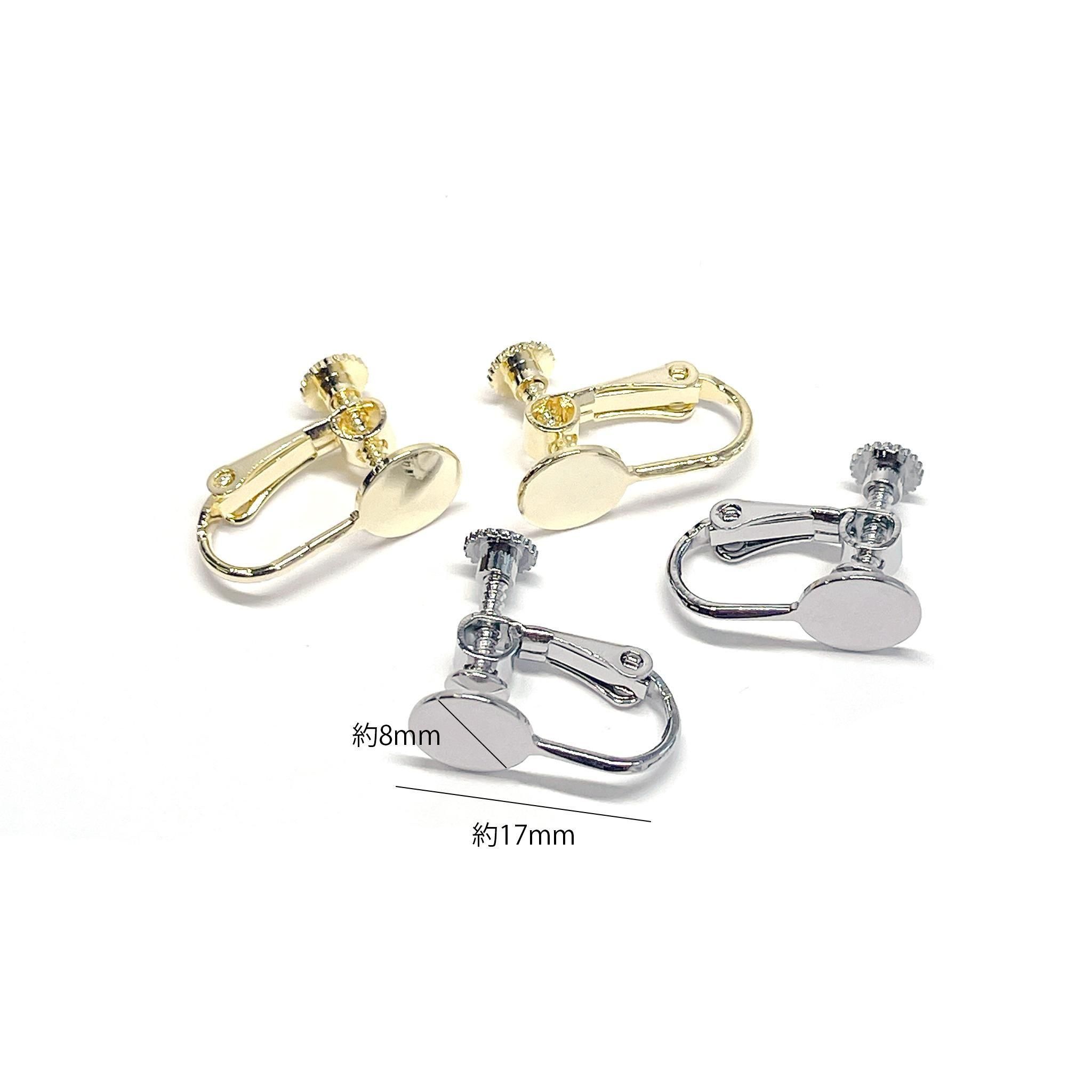 約8mmの円盤が付いた、ネジバネ式イヤリング金具です。回す部分が円形になっており、安定感があり装着しやすい仕様。約17mmと扱いやすいサイズで、円盤部分にパーツを貼り付けてオリジナルイヤリングが簡単に製作できます。低金属アレルギー対応のニッケルフリー加工で、安心してお使いいただけるのも嬉しいポイントです。シンプルなデザインでどんなモチーフとも相性が良く、ハンドメイド初心者から経験者まで幅広くご利用いただけます。