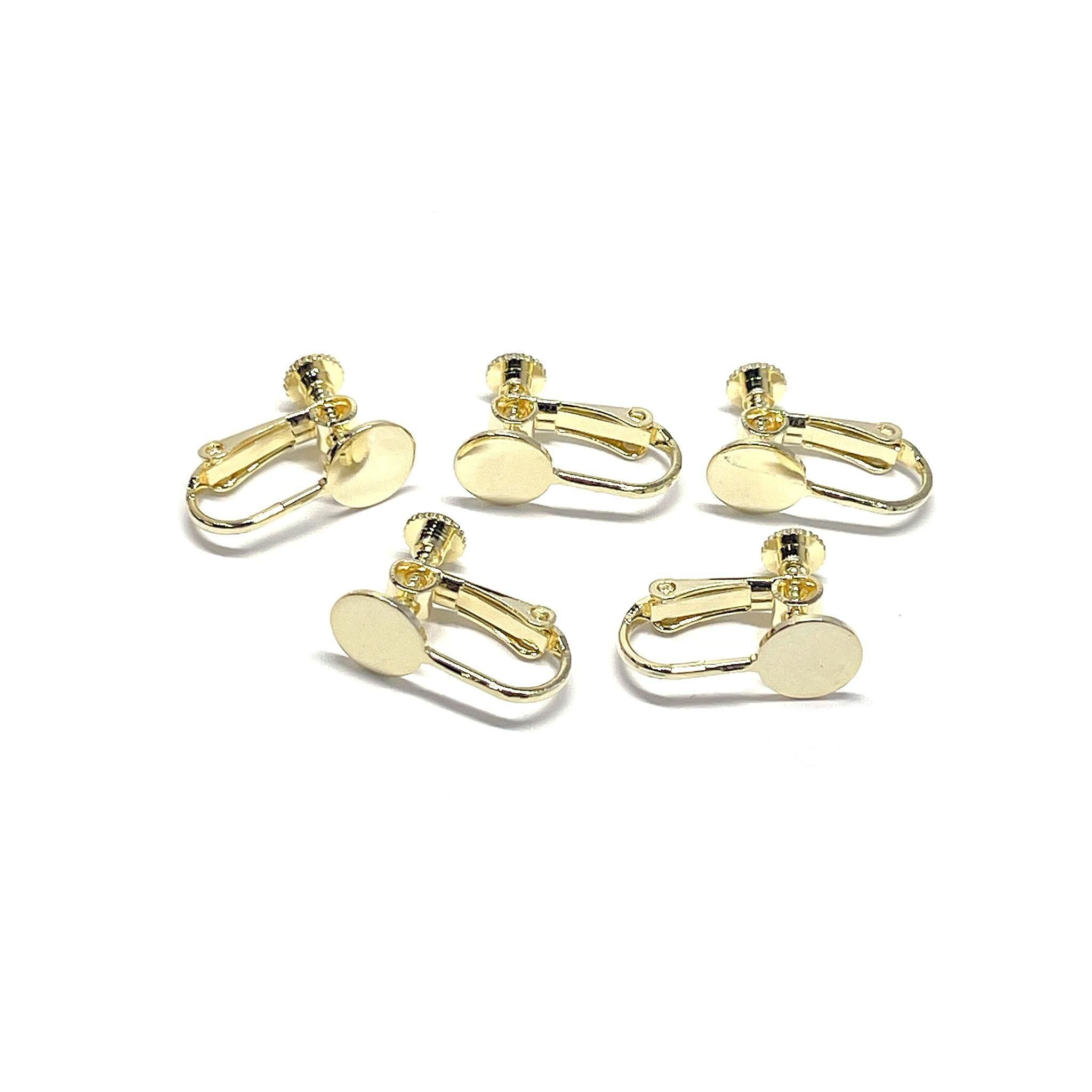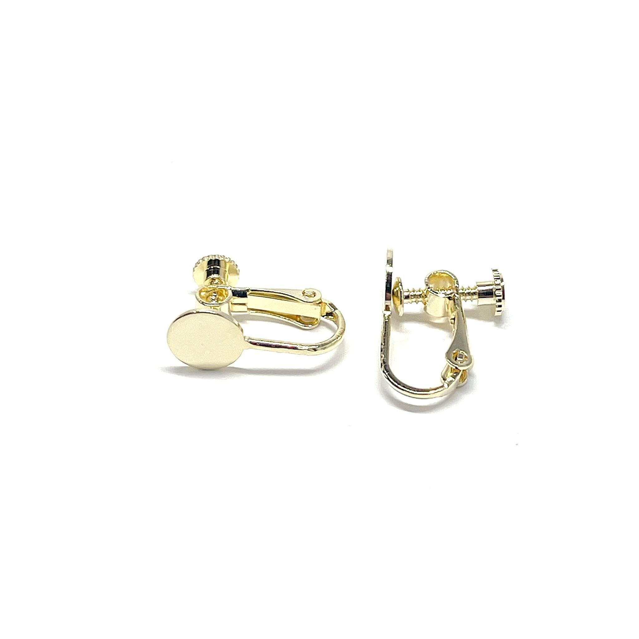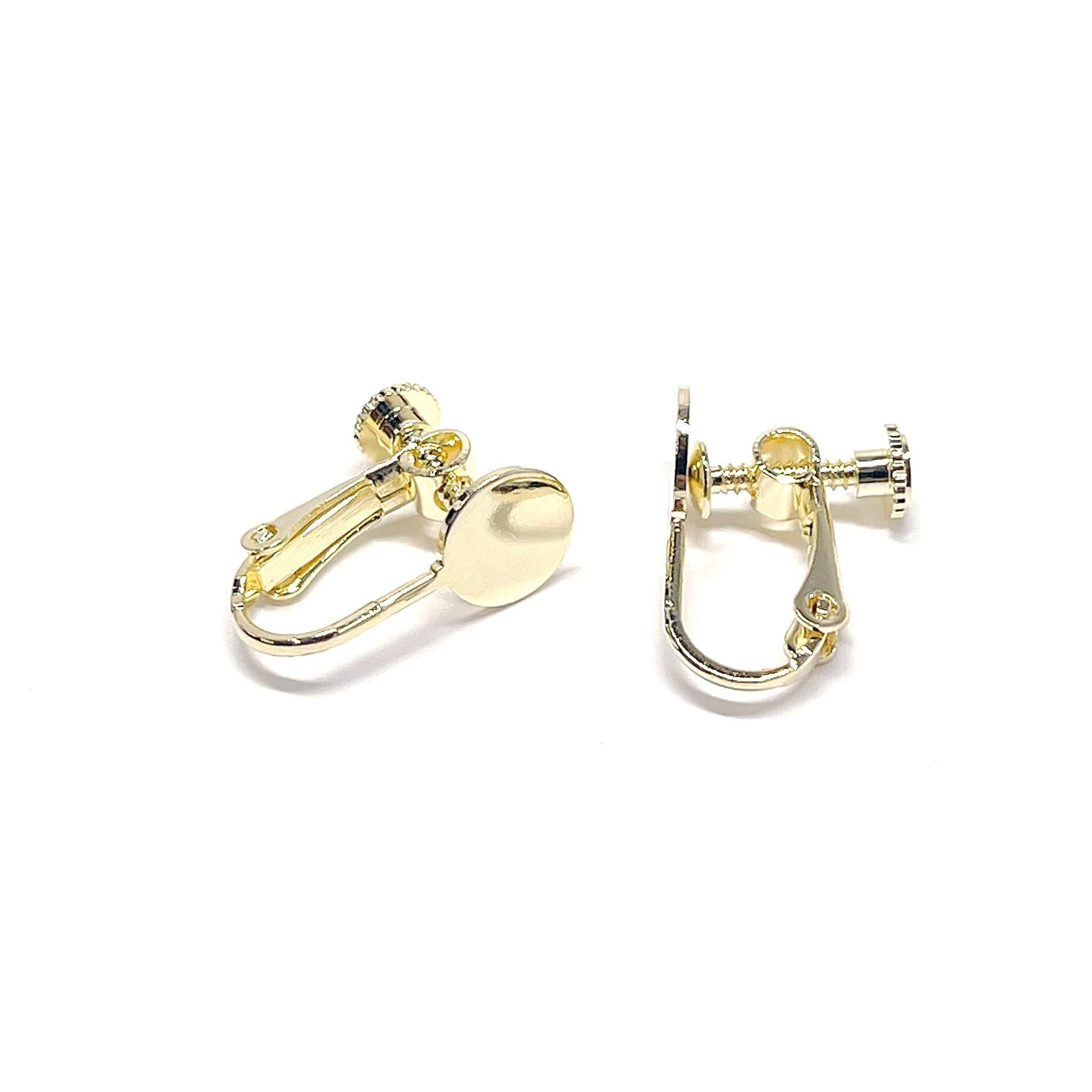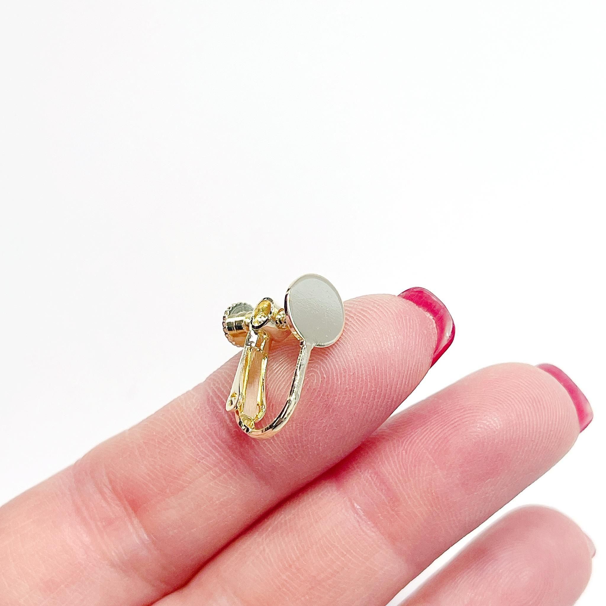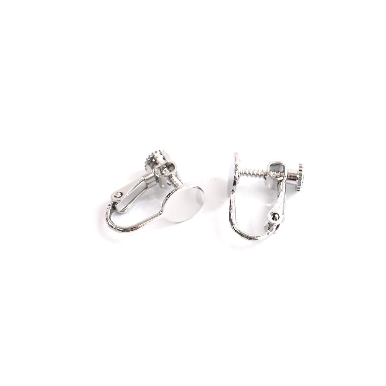 約8mmの円盤が付いた、ネジバネ式イヤリング金具です。回す部分が円形になっており、安定感があり装着しやすい仕様。約17mmと扱いやすいサイズで、円盤部分にパーツを貼り付けてオリジナルイヤリングが簡単に製作できます。低金属アレルギー対応のニッケルフリー加工で、安心してお使いいただけるのも嬉しいポイントです。シンプルなデザインでどんなモチーフとも相性が良く、ハンドメイド初心者から経験者まで幅広くご利用いただけます。