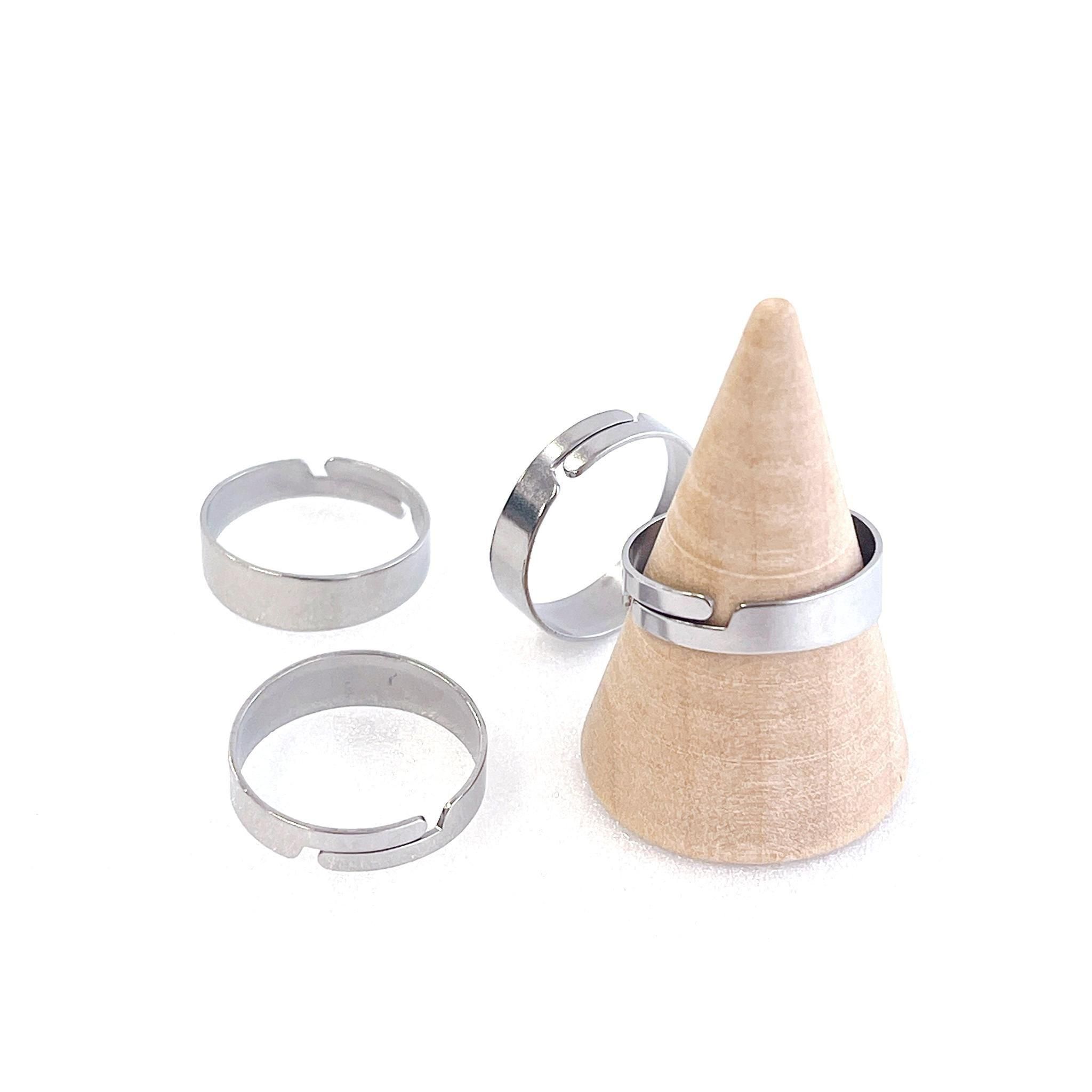 サイズ調整ができる、シンプルな開閉式リング金具です。本体にビーズ、天然石などを自由に組み合わせて、オリジナルのリング制作が楽しめます。シンプルなデザインでアレンジの幅が広く、ハンドメイド作家様にもおすすめです。