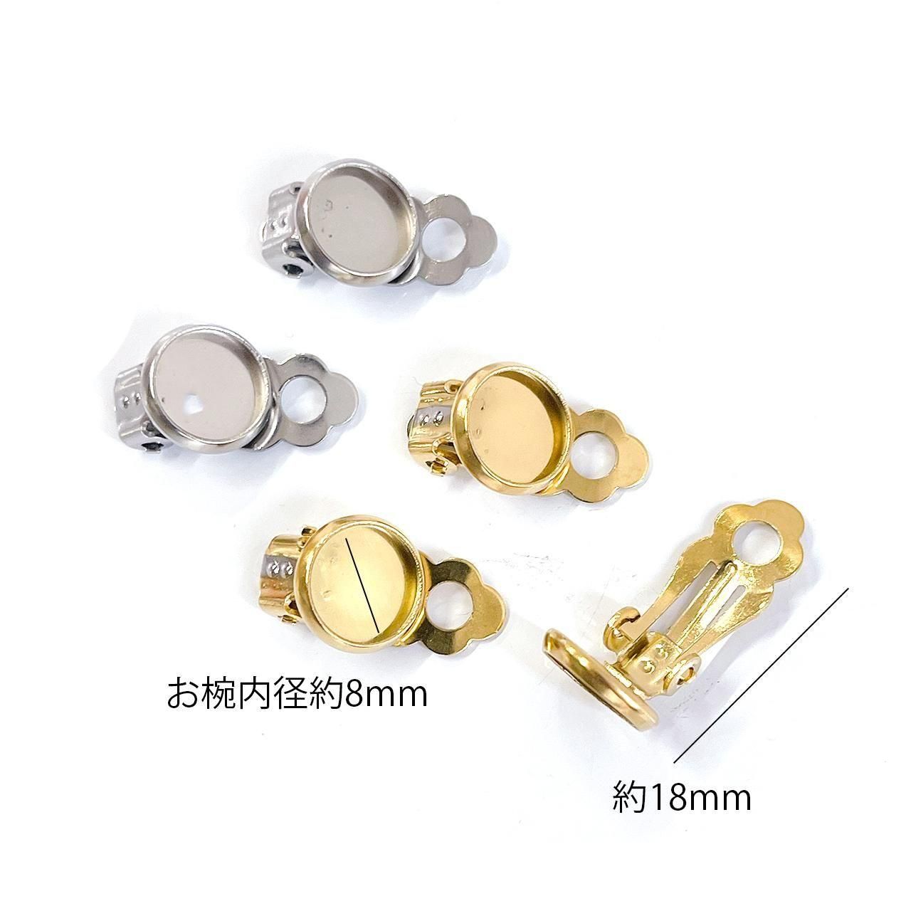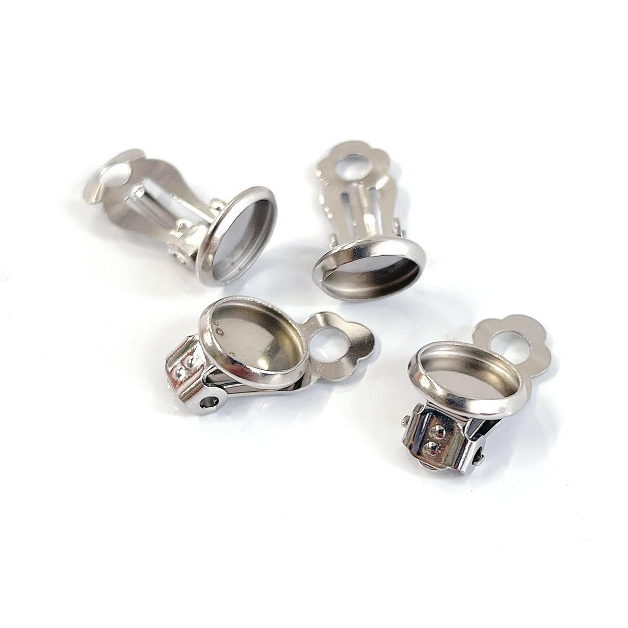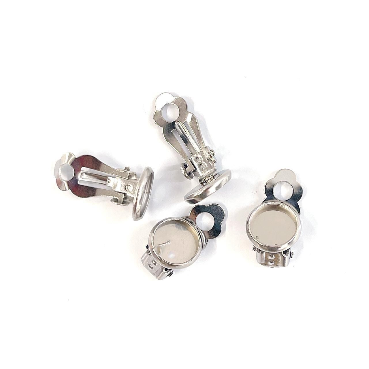 ・仕様:樹脂パール 片穴、コットンパール 片穴等を接着剤で貼り付けて使用するお椀付き/耳から落ちにくいクリップ式イヤリング金具