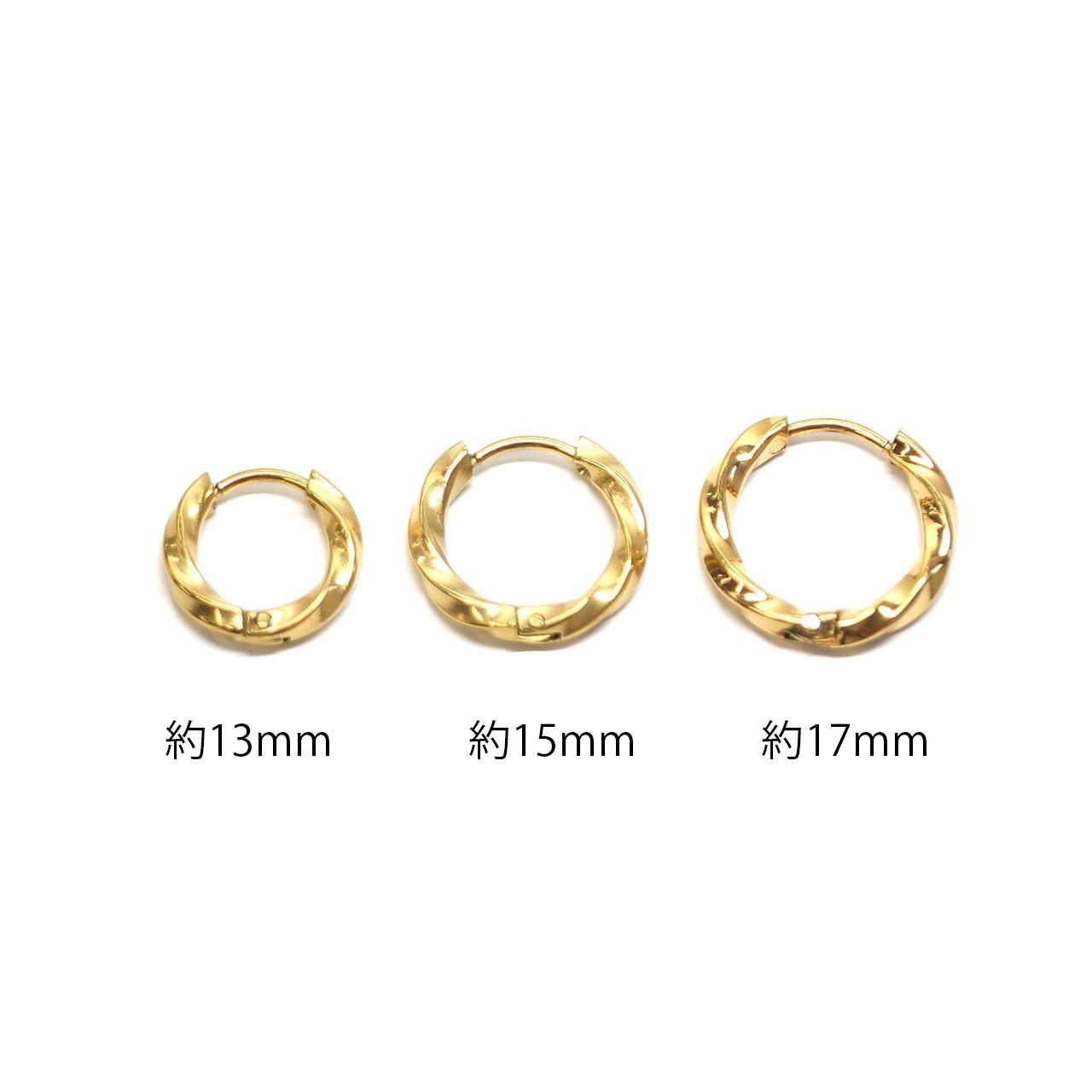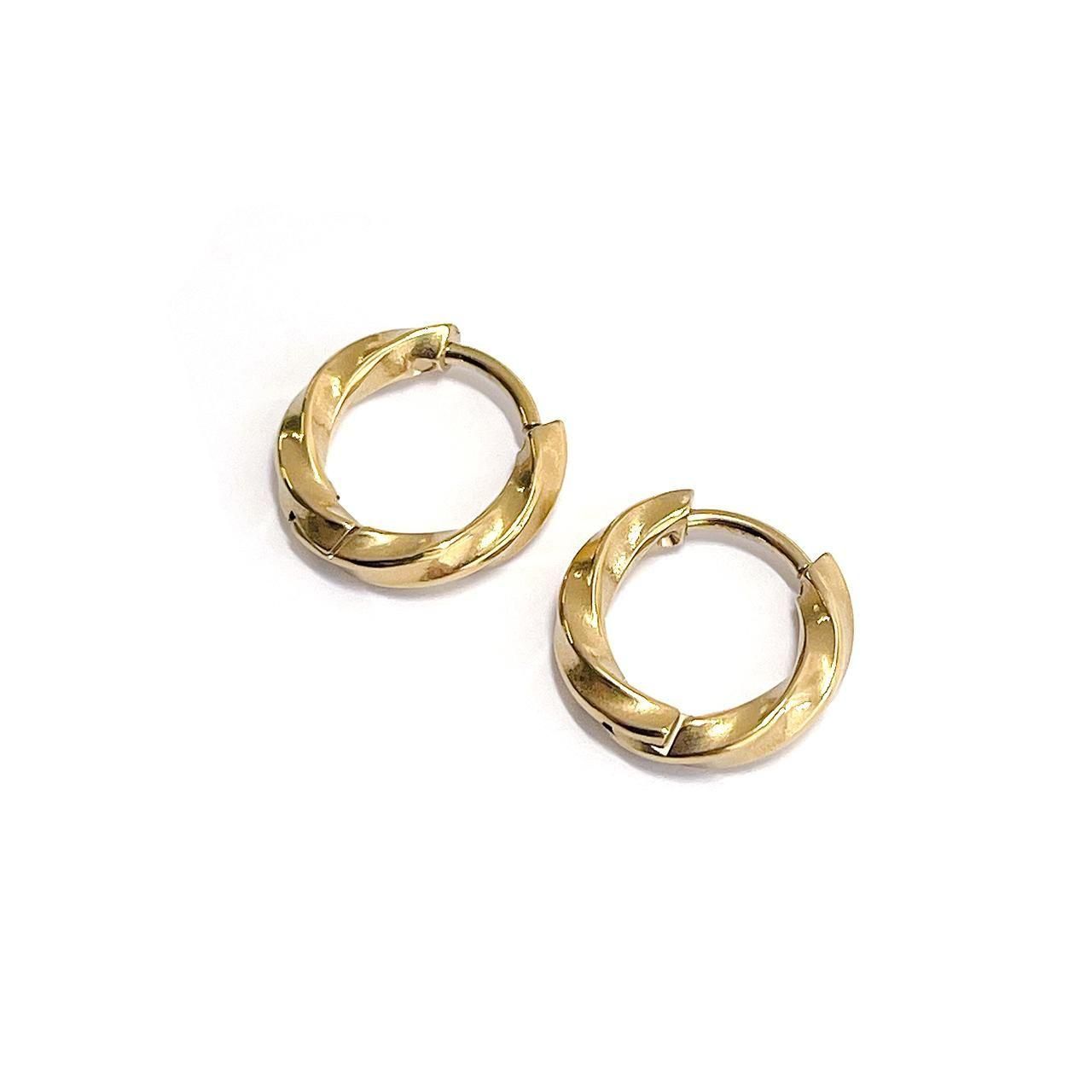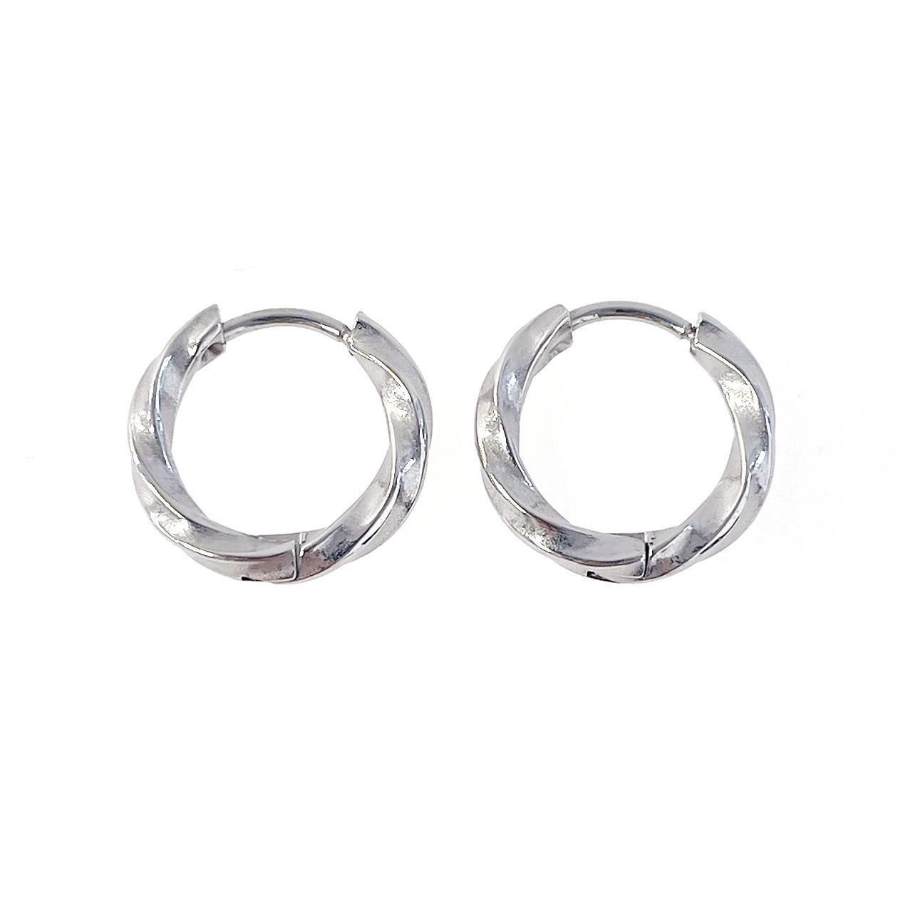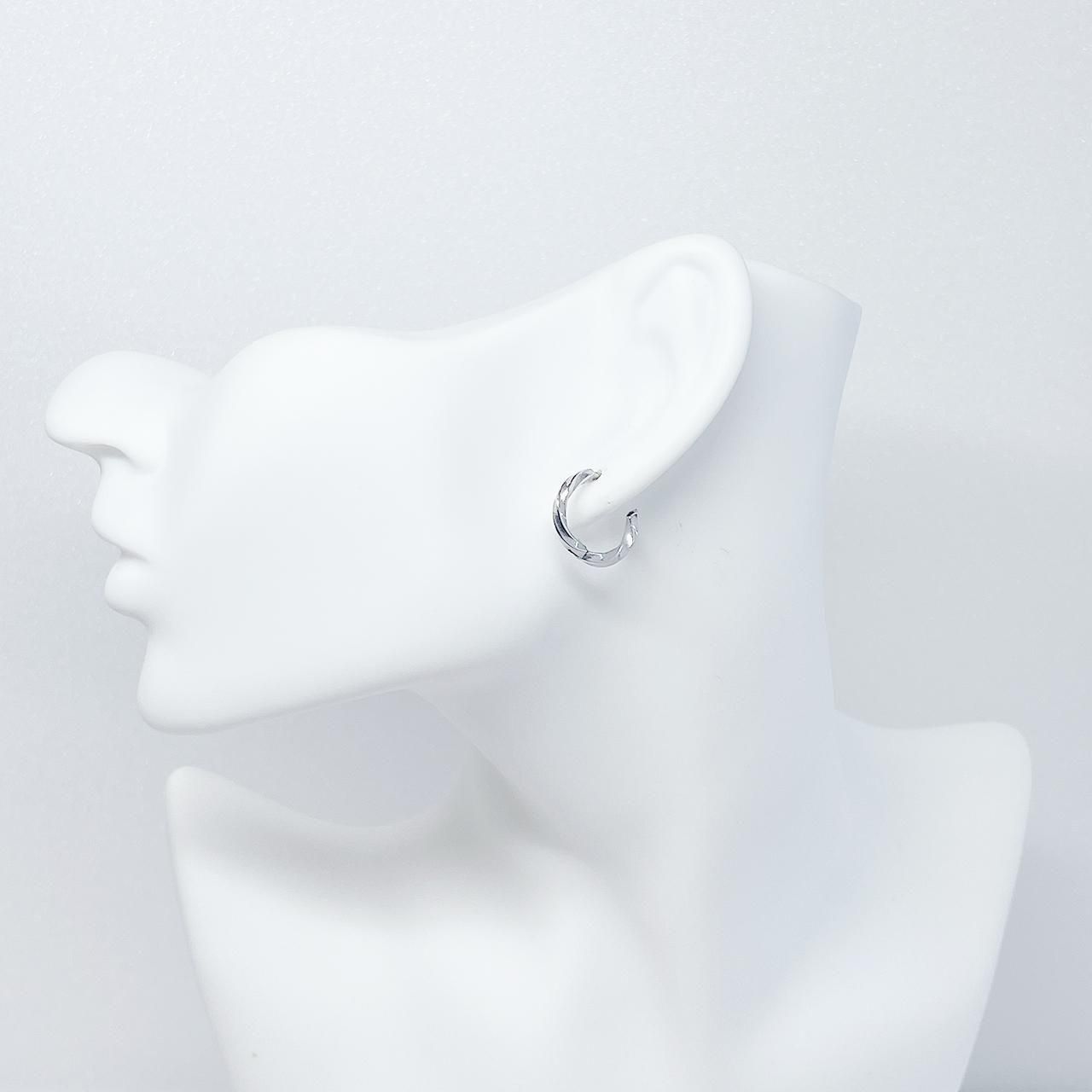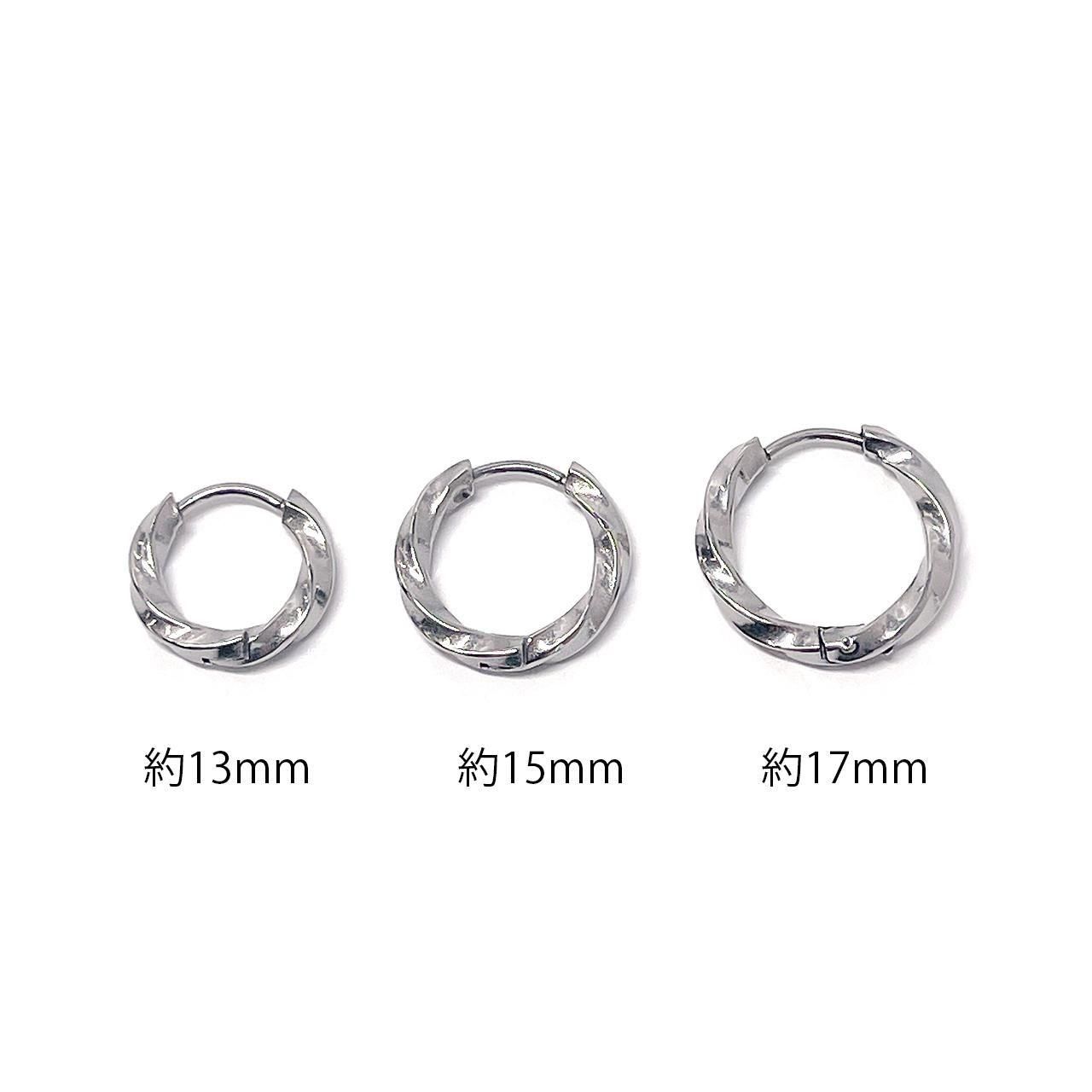 立体感のあるひねりデザインが印象的な、サージカルステンレス製フープピアス。程よい厚み(線径 約2.5mm)で存在感がありながら、耳元にすっきりと馴染む洗練されたフォルムです。