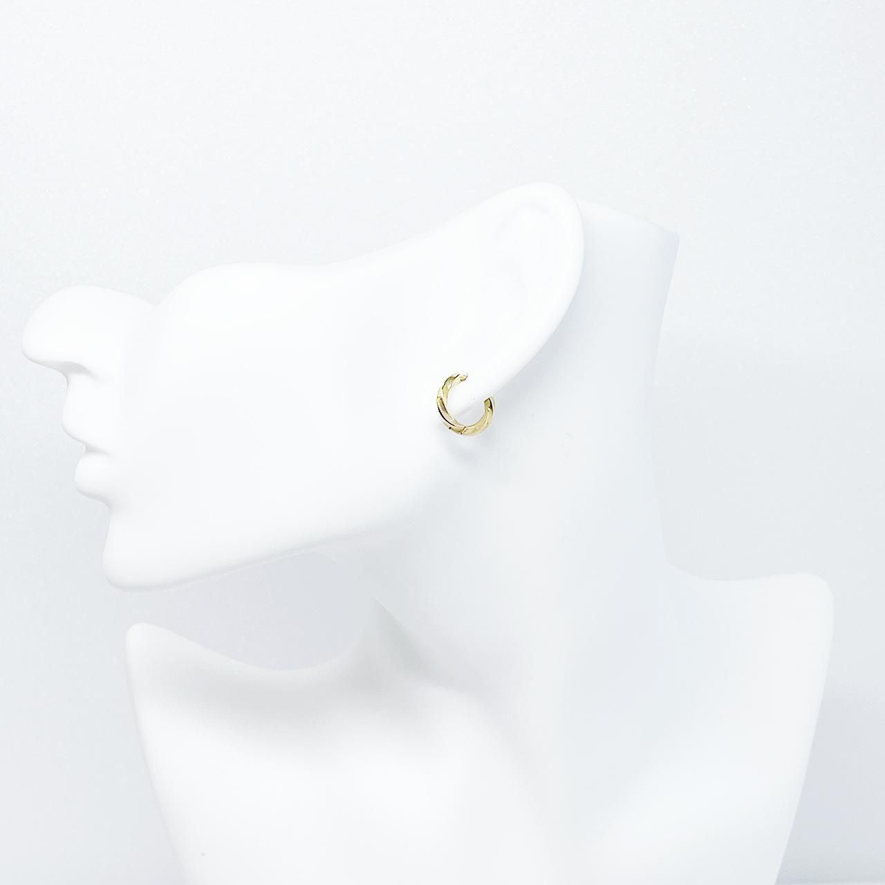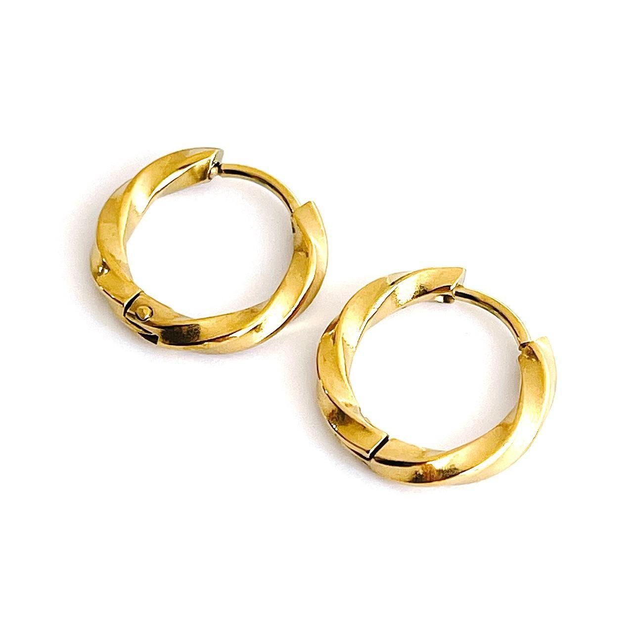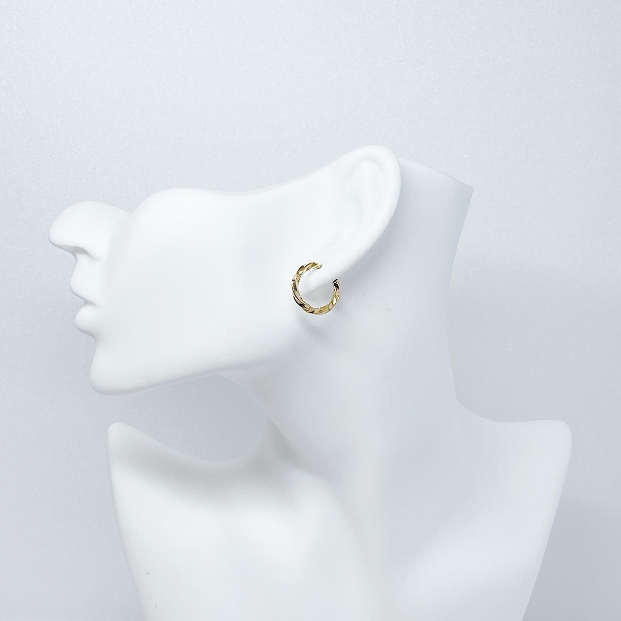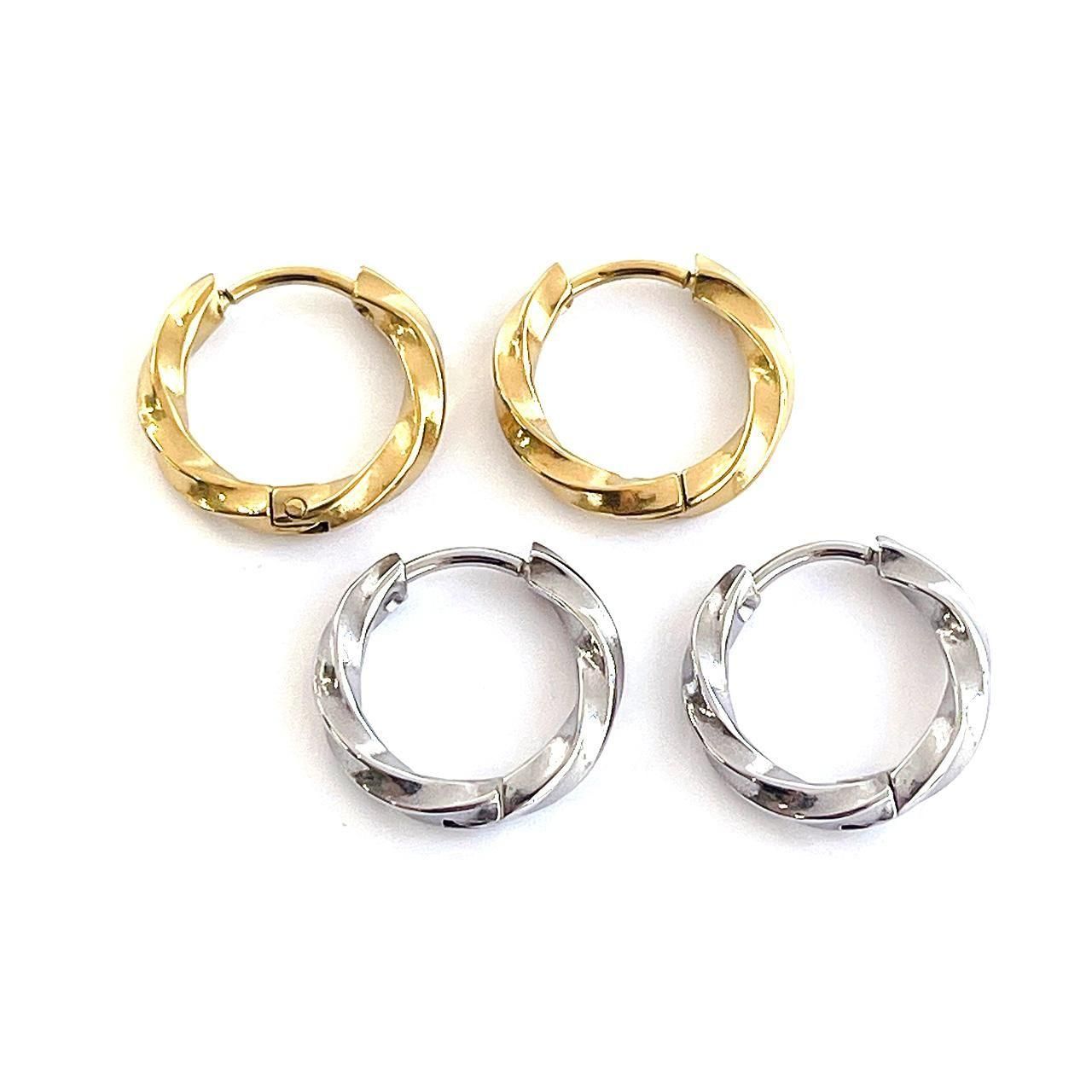 立体感のあるひねりデザインが印象的な、サージカルステンレス製フープピアス。程よい厚み(線径 約2.5mm)で存在感がありながら、耳元にすっきりと馴染む洗練されたフォルムです。