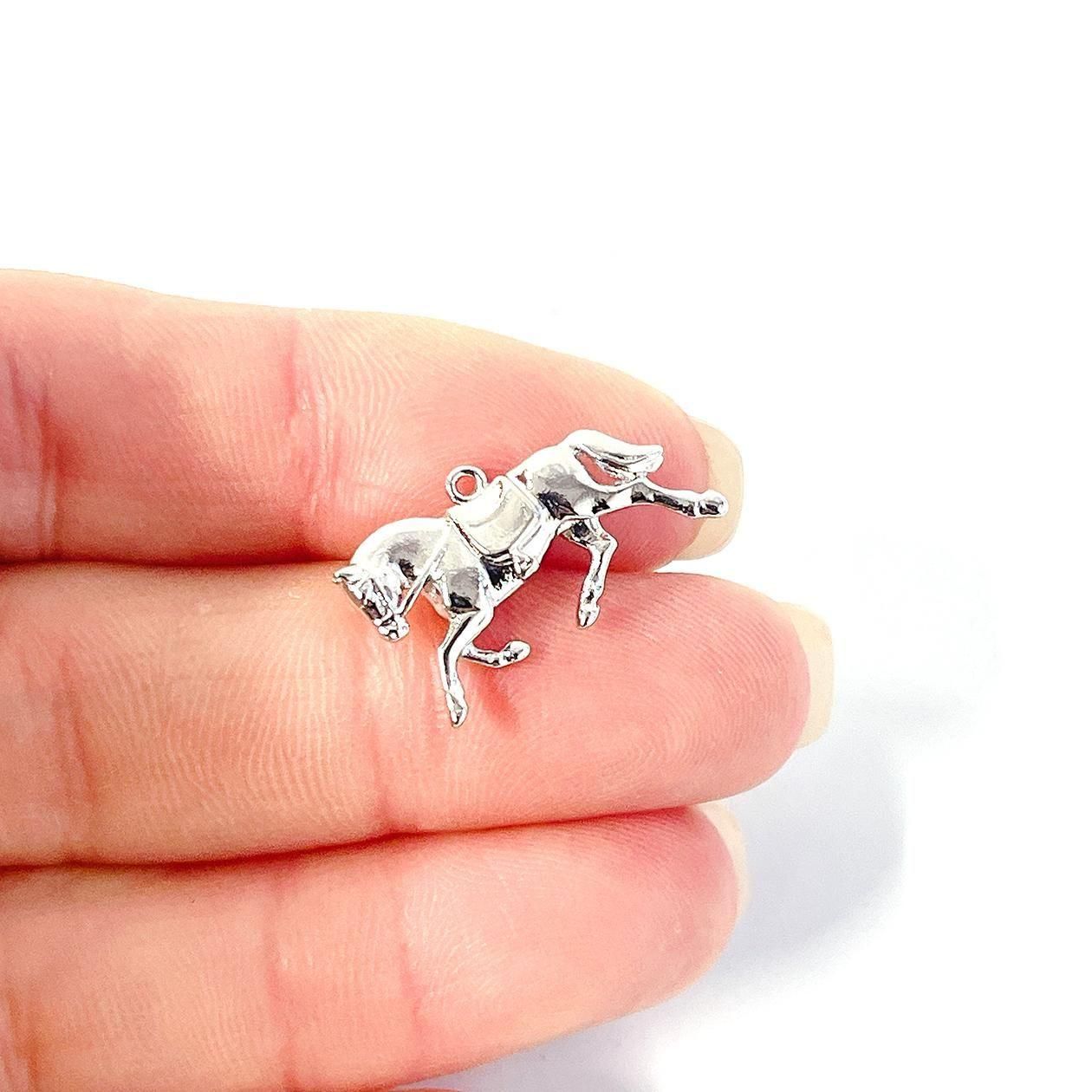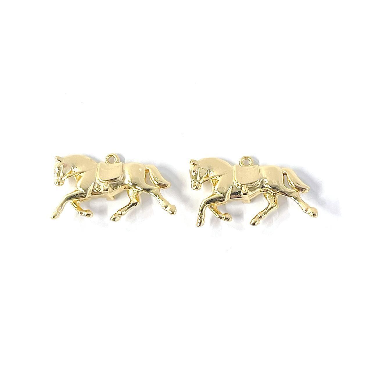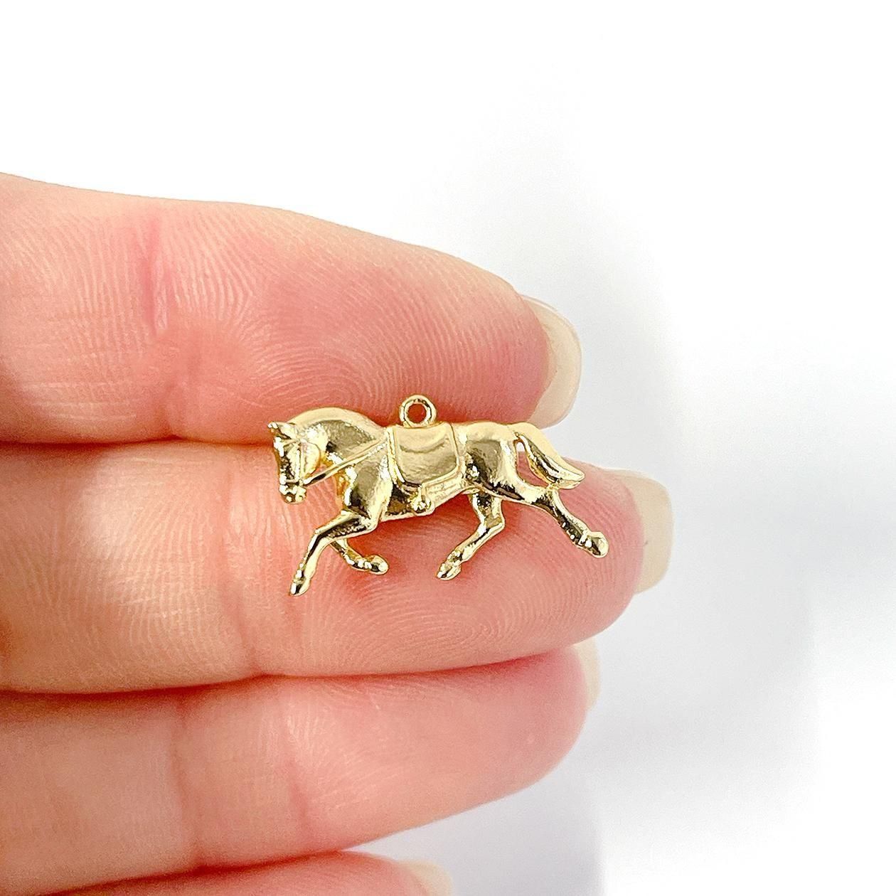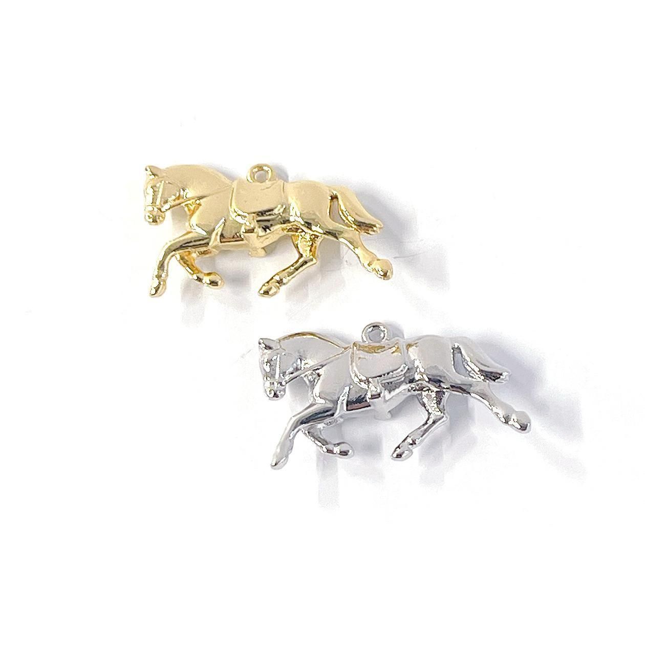 リアルな造形と立体感が魅力の、鞍付きの馬モチーフメタルチャームです。走る姿を捉えた躍動感あるデザインで、繊細ながらもしっかりとした存在感を放ちます。鞍(くら)があしらわれているため、乗馬モチーフやウエスタン調・クラシックなアクセサリーにもおすすめ。