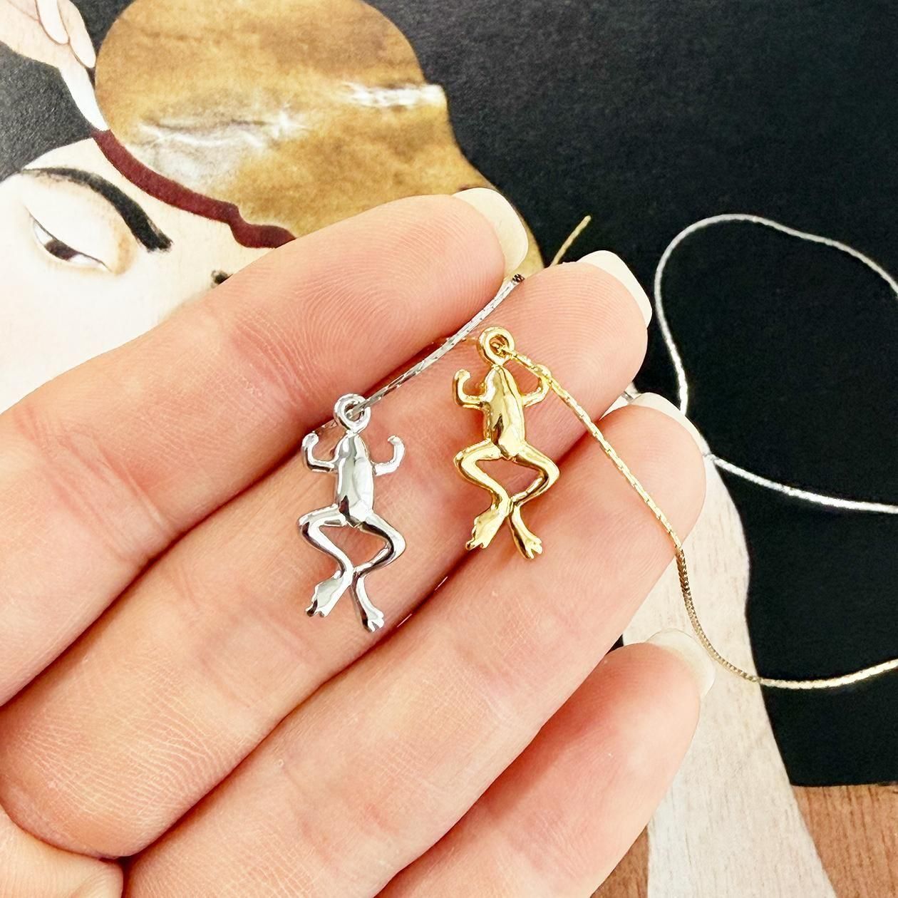 ユニークで愛らしいフォルムが魅力の、カエルモチーフチャーム。立体的なポーズとつややかなメタルの質感が美しく、シンプルながら存在感のあるデザインです。