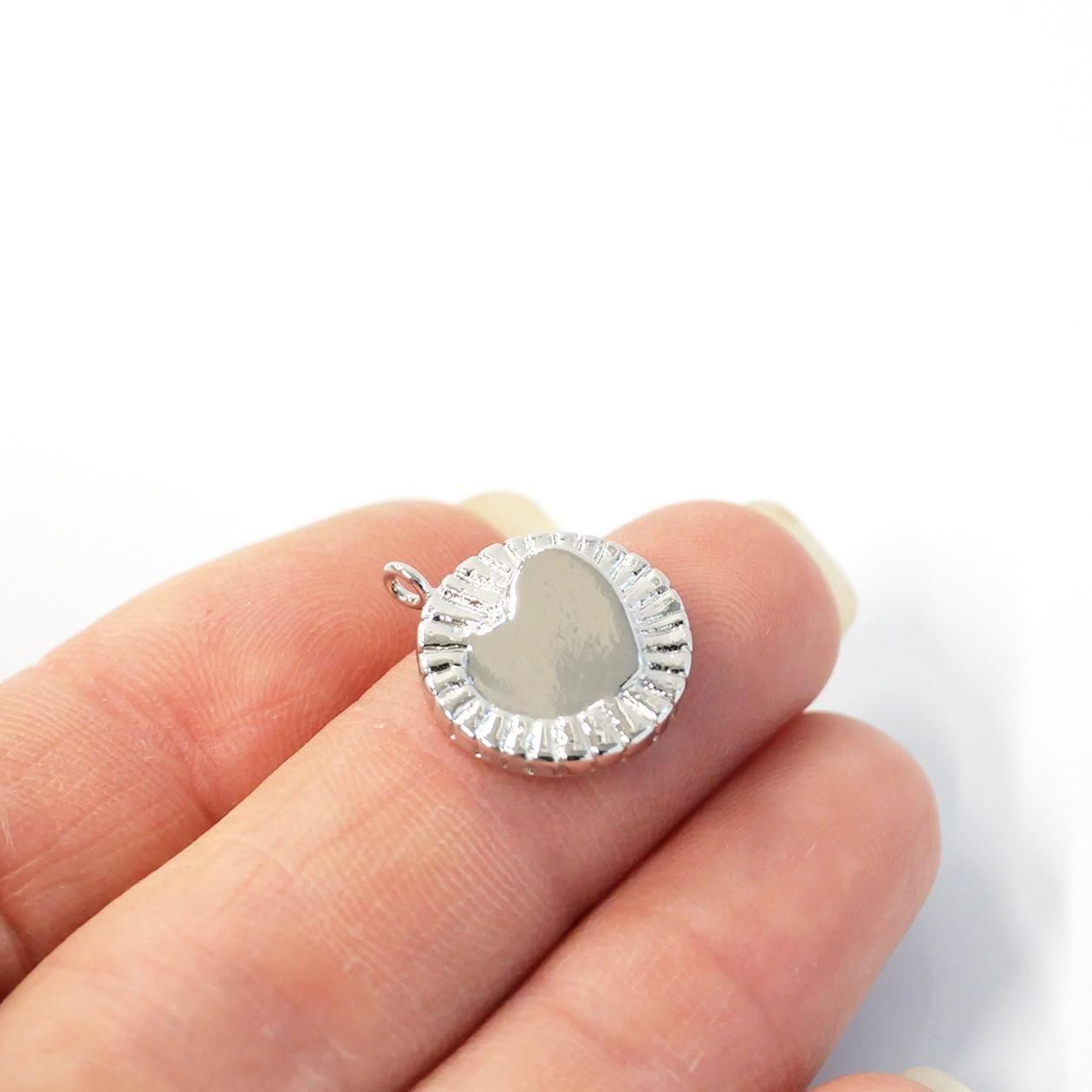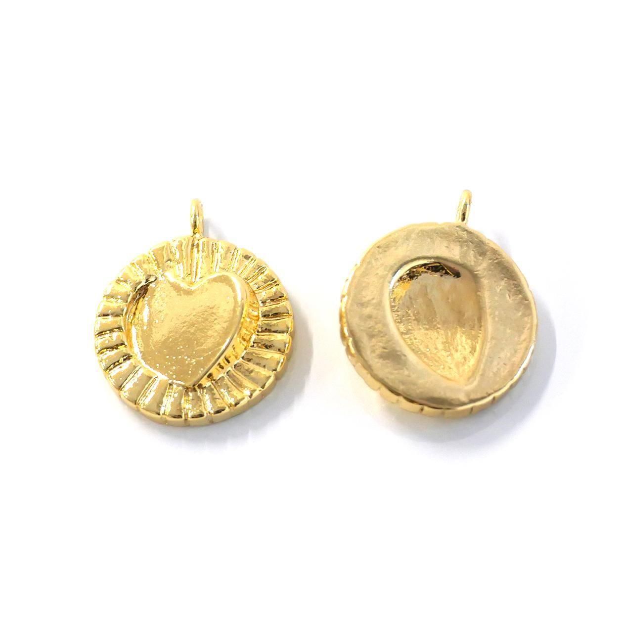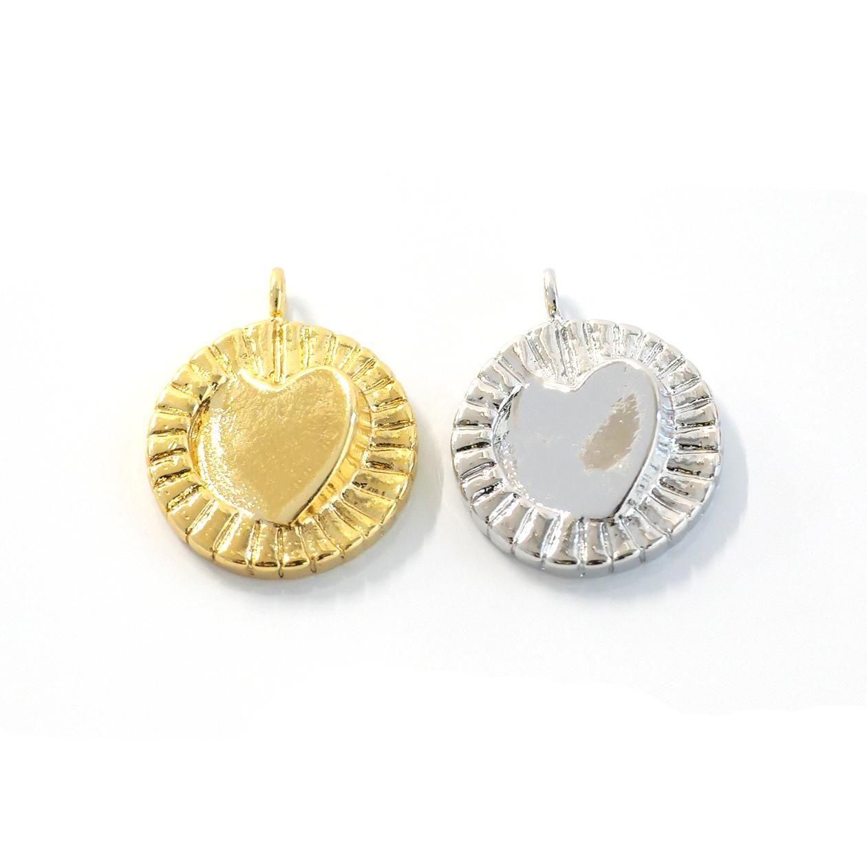 温かみのあるハートモチーフが可愛い、真鍮製のメダルチャームです。低金属アレルギーに配慮したニッケルフリー仕様で、日本国内工場にて丁寧に製作しています。