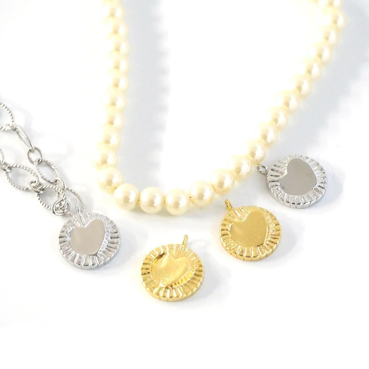 程よい厚みと立体感のあるデザインは、ネックレスやブレスレット、ピアスのワンポイントにおすすめ。ハンドメイド作品のアクセントとしてはもちろん、ギフト用のアレンジにも使いやすいサイズ感です。ゴールド・シルバーの2色展開。ハンドメイド作家様のアクセサリー制作に上質な輝きをプラスします。