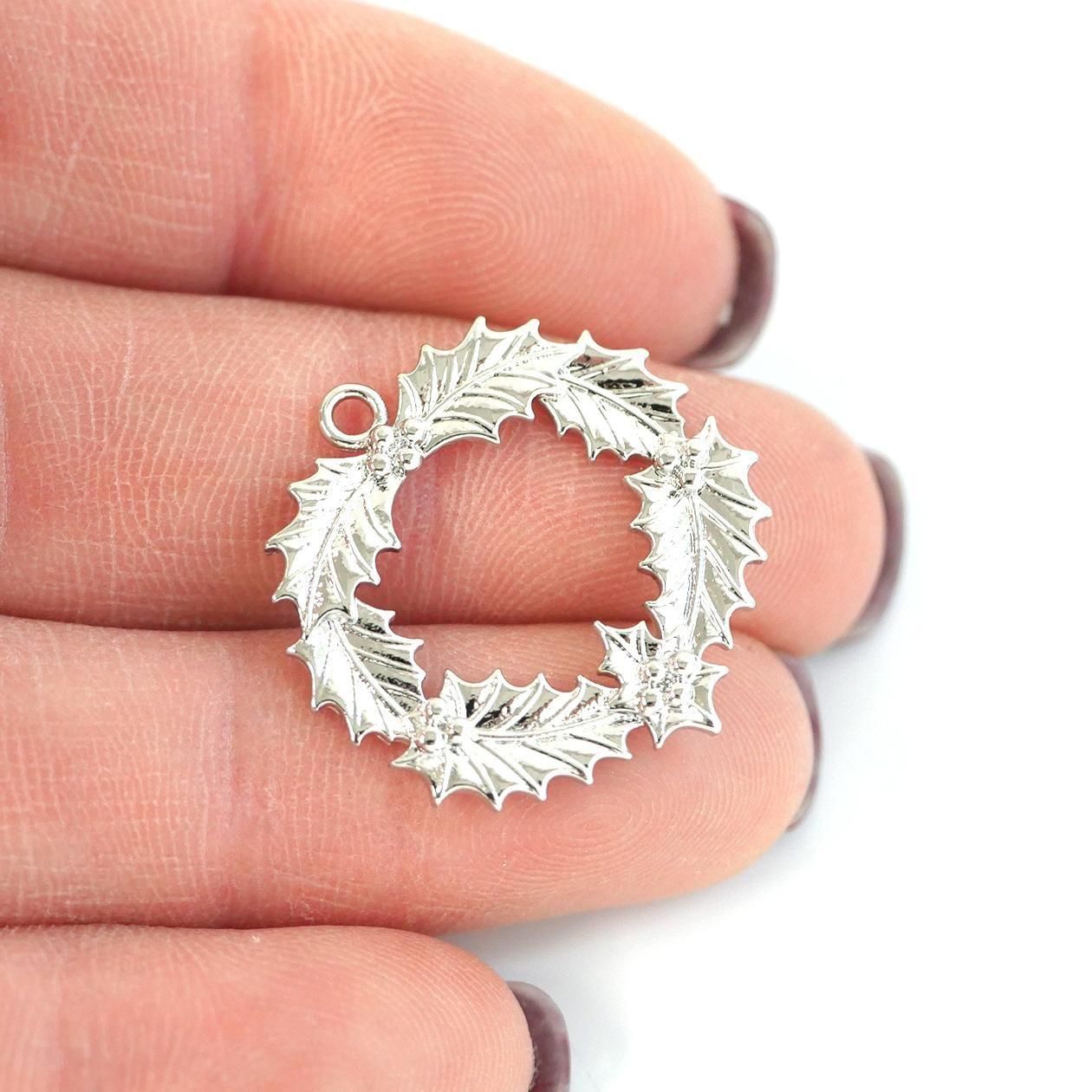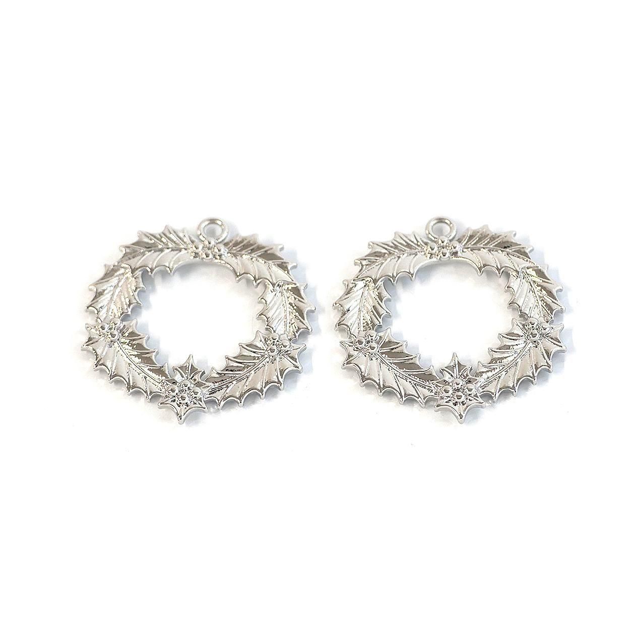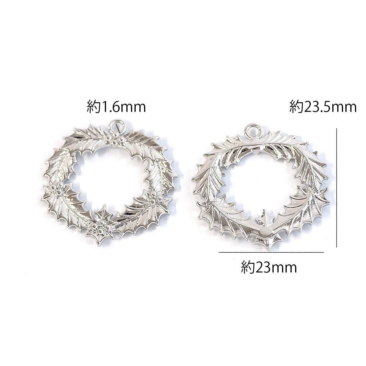 クリスマスの季節感をさりげなく演出してくれる、ヒイラギの葉をモチーフにしたリース型のチャームです。繊細な葉脈のディテールと、やわらかな光沢感が魅力。上品でクラシカルな印象のリースデザインは、ネックレストップやピアス、ブローチなど幅広いハンドメイドアクセサリーにご使用いただけます。素材にはニッケルフリーの真鍮を使用し、日本国内で丁寧にメッキ加工を施しています。金属アレルギーに配慮した安心設計で、作品の仕上がりも高級感のある仕上がりに。シーズン限定のアクセサリーづくりや、ギフト向けアイテムのパーツとしてもおすすめです。