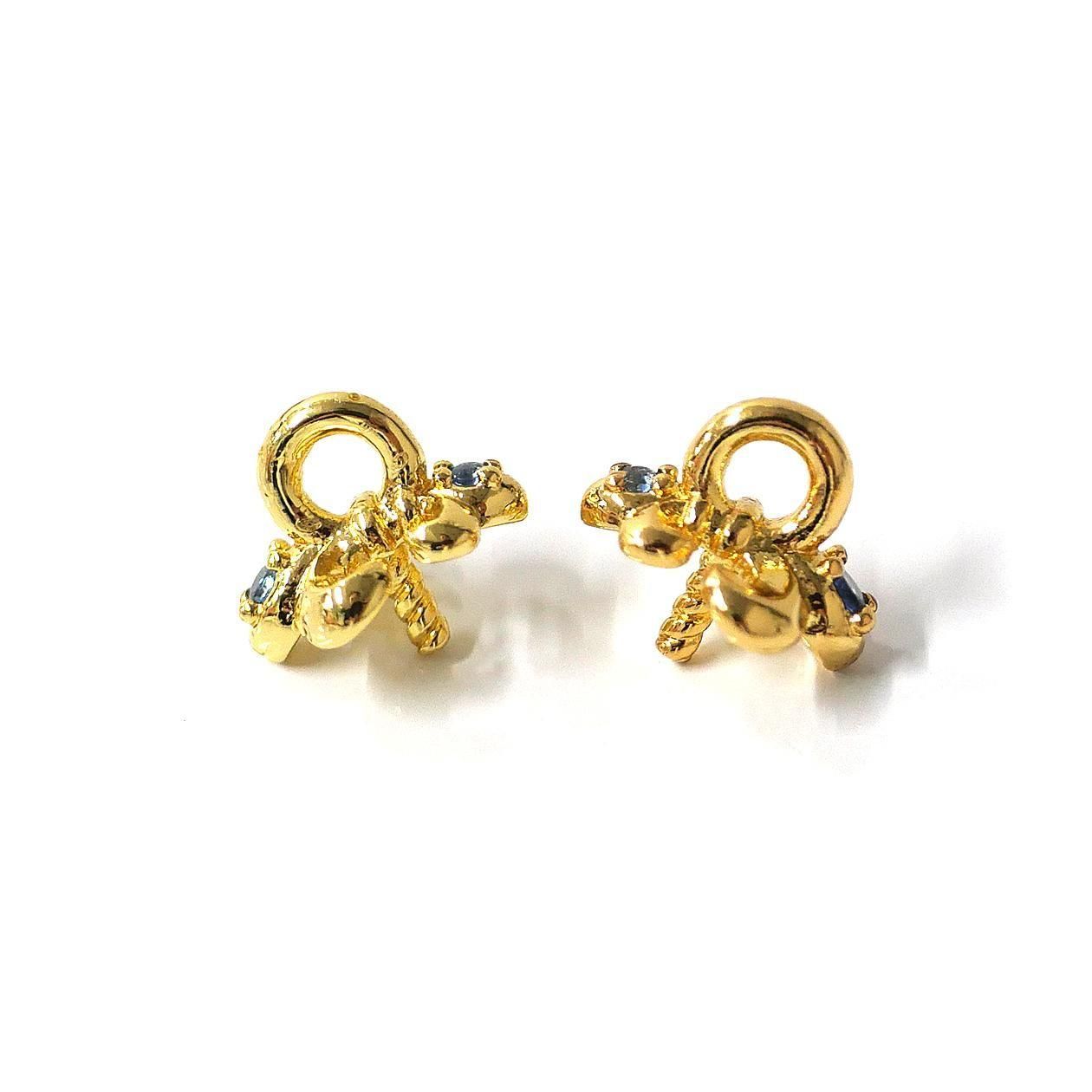 【2個入り】キュービックジルコニア&ピン付 ヨーロピアンリボンキャップチャーム 金具