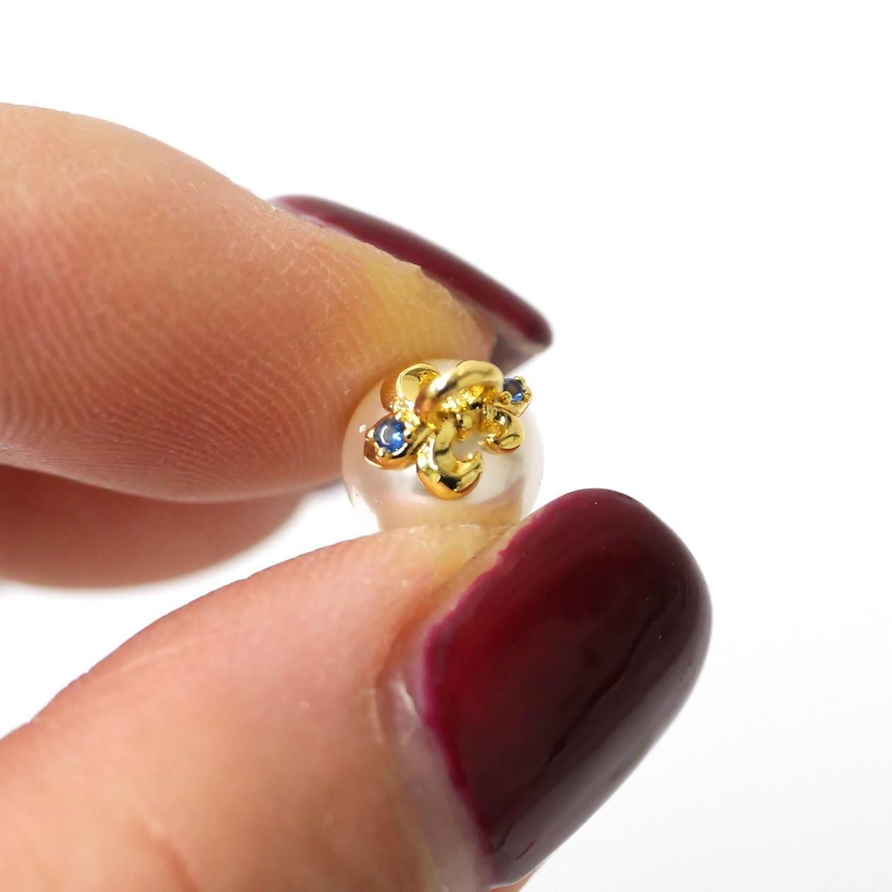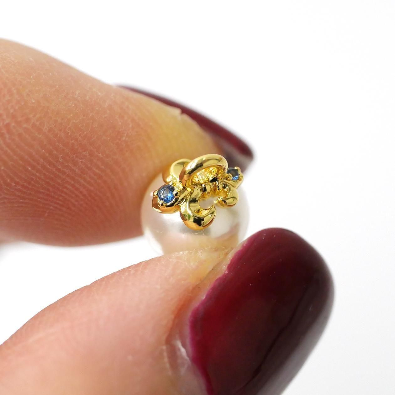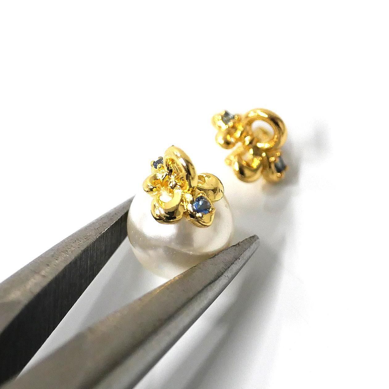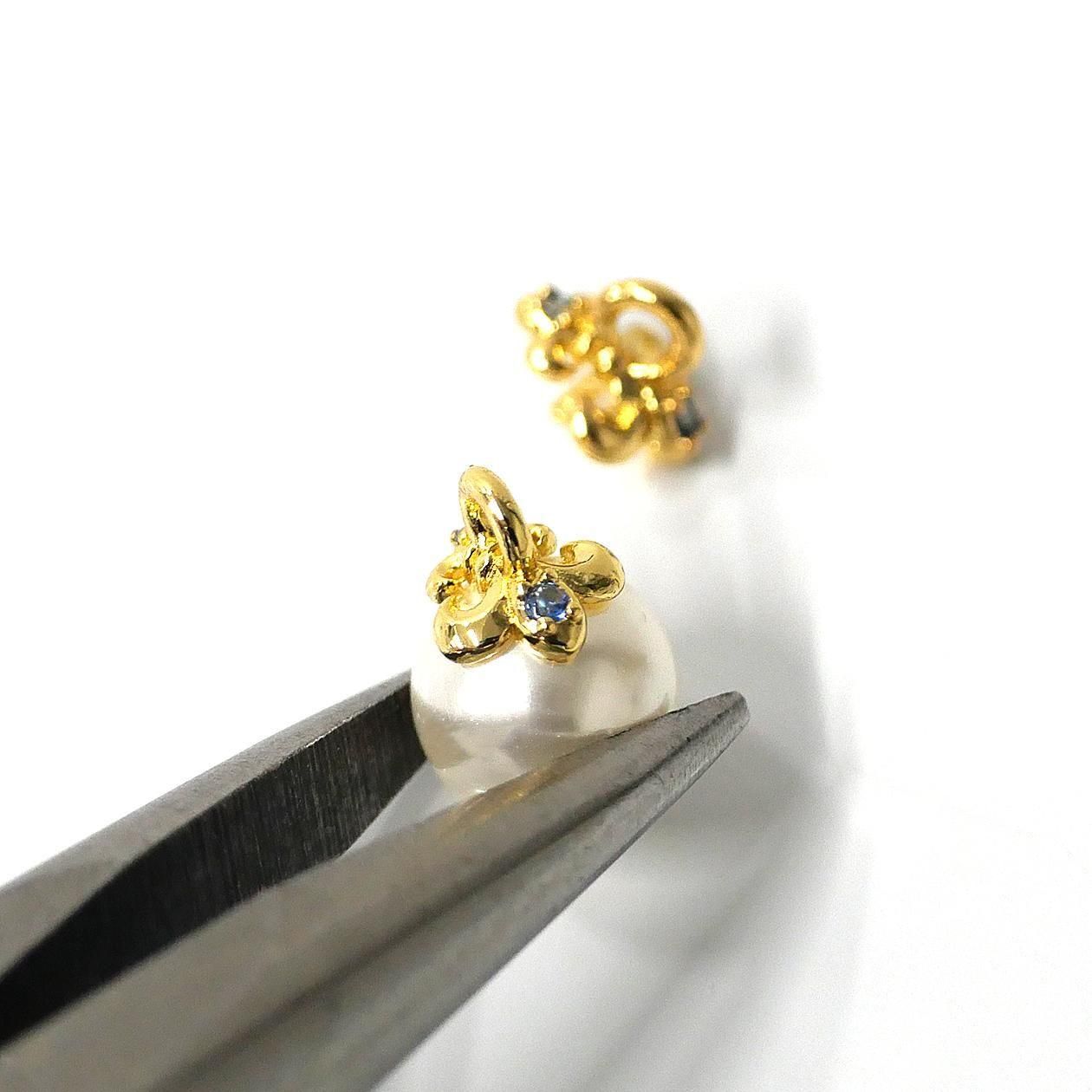 繊細なリボン装飾にジルコニアを散りばめた、クラシカルなヨーロピアン調のキャップチャーム。小さな王冠のような装飾性と、パールやビーズを引き立てる立体感のあるデザインが魅力です。丸カンが通せる穴付きで、チャームやチェーンとの組み合わせも自在。作品の格をワンランク上げる、ディテールにこだわる作家様におすすめのパーツです。